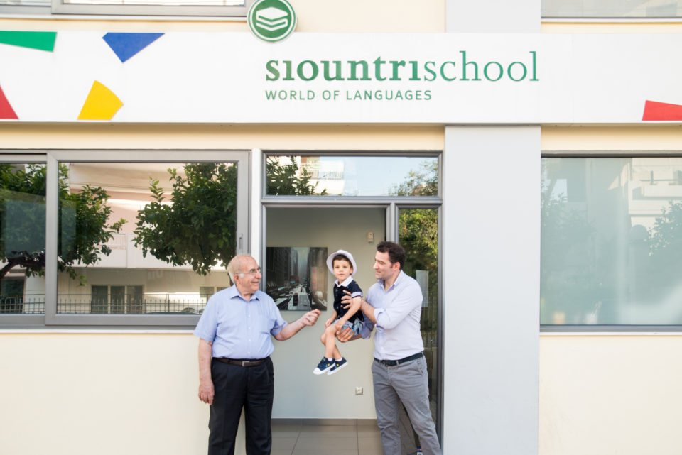 Κάθε μέρα, στις 9 και μισή ακριβώς τα ρολά ανεβαίνουν στο Siountri School. Τι κι αν σπάνια εκείνη την ώρα ξεκινάει μάθημα κάποιο τμήμα; «Πρέπει να ανοίξω και να αερίσω τις τάξεις, να υποδεχθώ τις καθαρίστριες, να απαντήσω στα τηλεφωνήματα, να περιποιηθώ τις ζαρντινιέρες μας…». Μπορεί ο κ. Κώστας Σιούντρης, που το 1985 ίδρυσε το ομώνυμο φροντιστήριο, να διανύει σήμερα την ένατη δεκαετία της ζωής του, μιλά όμως κ δρα με την ενέργεια και το μπρίο εφήβου. Εξ ου και καθημερινά αλλάζει τρεις συγκοινωνίες για να φτάσει στο πάλαι ποτέ «στρατηγείο» του. «Πονάω το σχολείο αυτό, είναι το δεύτερο παιδί μου» λέει με νόημα, καθώς μας υποδέχεται στο γραφείο του γιου του, Δημήτρη, σημερινού διευθυντή του Siountri School.