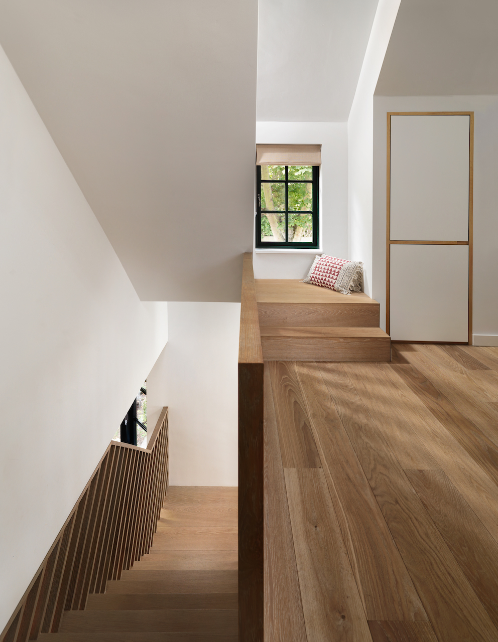 Τα δωμάτια στους ορόφους εξαπλώνονται μέχρι και το ζευκτό της στέγης και έτσι το σπίτι εκμεταλλεύεται πλήρως το κέλυφός του. Ενσωματώνοντας μια επέκταση στο πίσω μέρος του ισογείου, μια πλευρική στο ισόγειο και στον πρώτο όροφο και μια επέκταση στη στέγη, η επιφάνεια του αρχικού σπιτιού υπερδιπλασιάζεται σε από 80 τ.μ. σε 180 τ.μ.