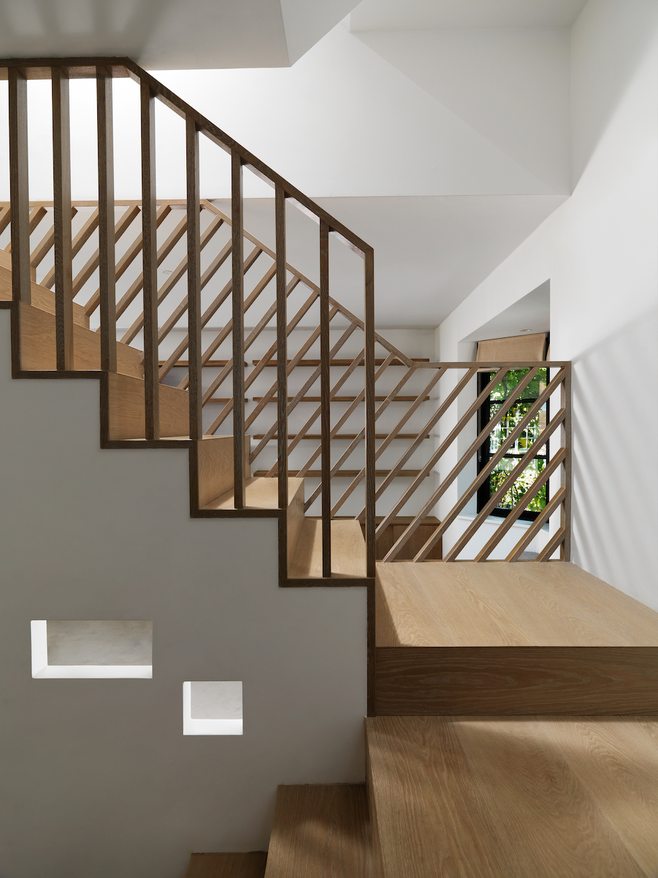 «Η παραδοσιακή γραμμική οργάνωση των row houses, -ξεχωριστοί χώροι που διαδέχονται ο ένας τον άλλον- επαναπροσδιορίζεται, ώστε τελικά οι χώροι να διατάσσονται κυκλικά μεταξύ τους. Τα ξύλινα κιγκλιδώματα είναι ελαφρώς κεκλιμένα, φιλτράροντας έτσι την οπτική φυγή από την είσοδο και ενεργοποιώντας το χώρο του κλιμακοστασίου, ακόμα και όταν δεν χρησιμοποιείται».