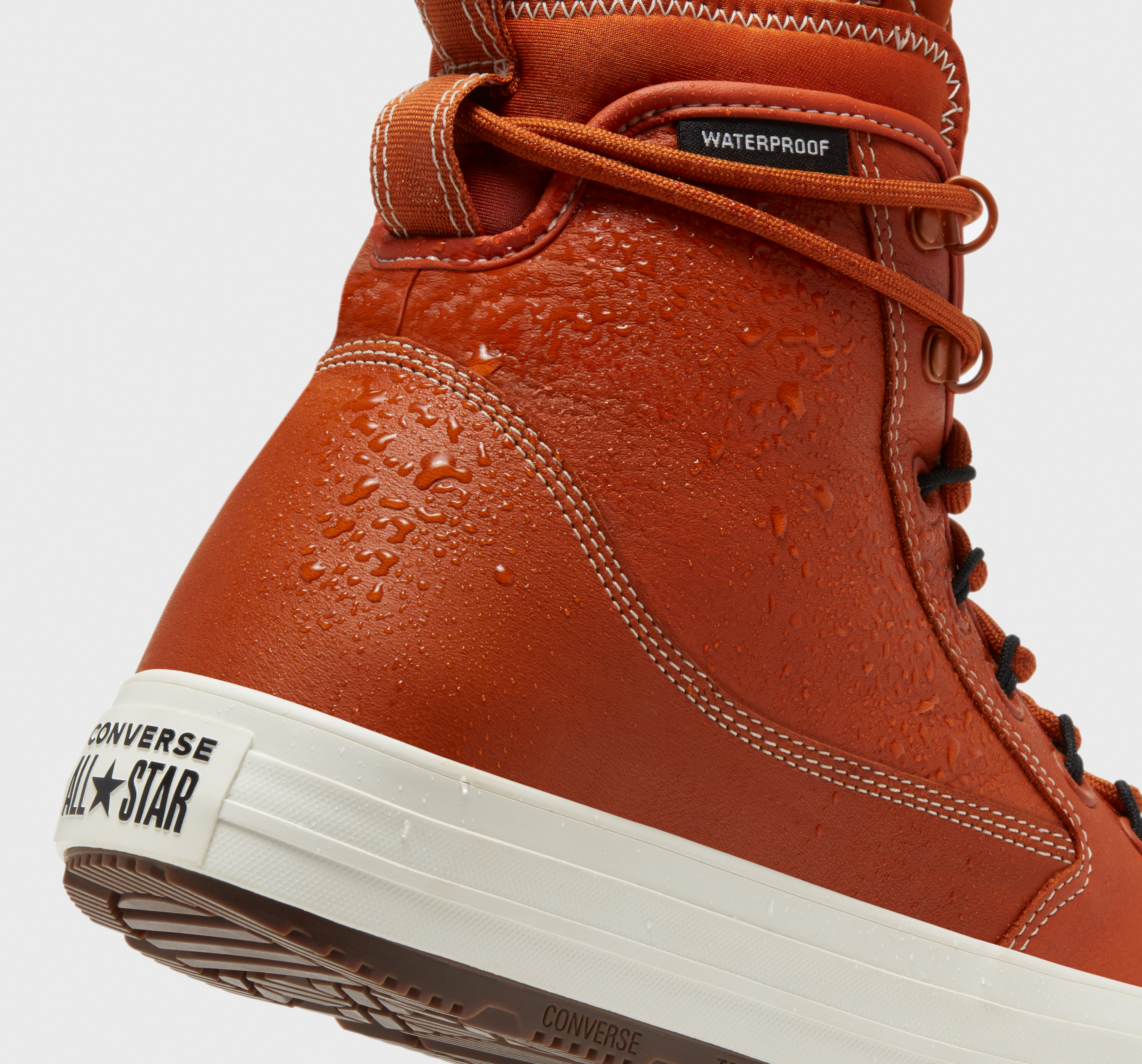 Από την άλλη τα αδιάβροχα Gore-tex μποτάκια Chuck Taylor All Star της Converse με OrthoLite σόλα, αντλούν έμπνευση από την ορειβασία. Η χαρακτηριστική τραχιά εξωτερική σόλα προσφέρει μεγάλη άνεση σε outdoor περιπέτειες και παρόλο που μοιάζουν με κλασσικά Chuck Taylor All Star, είναι φτιαγμένα από εξαιρετικά ανθεκτικό TecTuff υλικό και αδιάβροχα. Bγαίνουν σε γκρι, μαύρο και καφέ χρώμα, που σημαίνει ότι συνδυάζονται πολύ εύκολα με όλα τα χρώματα.