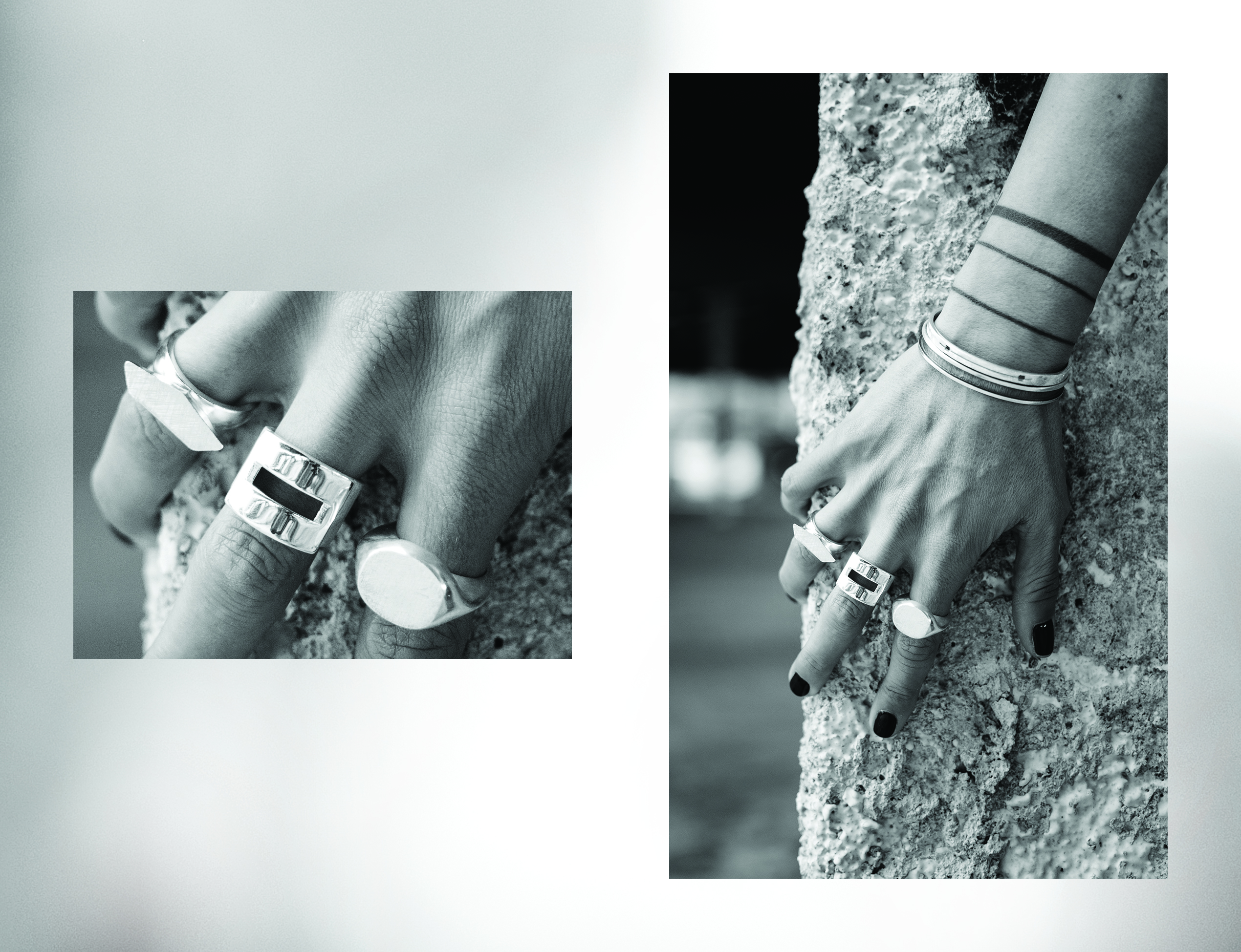 Οι λιτές γραμμές και τα μίνιμαλ σχέδια σε σχέση με τα «δυναμικά» υλικά που χρησιμοποιεί η Ιωάννα Ανδρίτσου, είναι λίγα μόνο από τα στοιχεία που κάνουν τα Noilence να ξεχωρίζουν. «Τα περισσότερα μου σχέδια βασίζονται στα πολύτιμα μέταλλα και πιο συγκεκριμένα στο ασήμι. Αυτό που πιστεύω ότι τα κάνει ξεχωριστά είναι οι γραμμές τους και ένας μινιμαλισμός που βασίζεται σε έναν αρκετά πανκ χαρακτήρα».