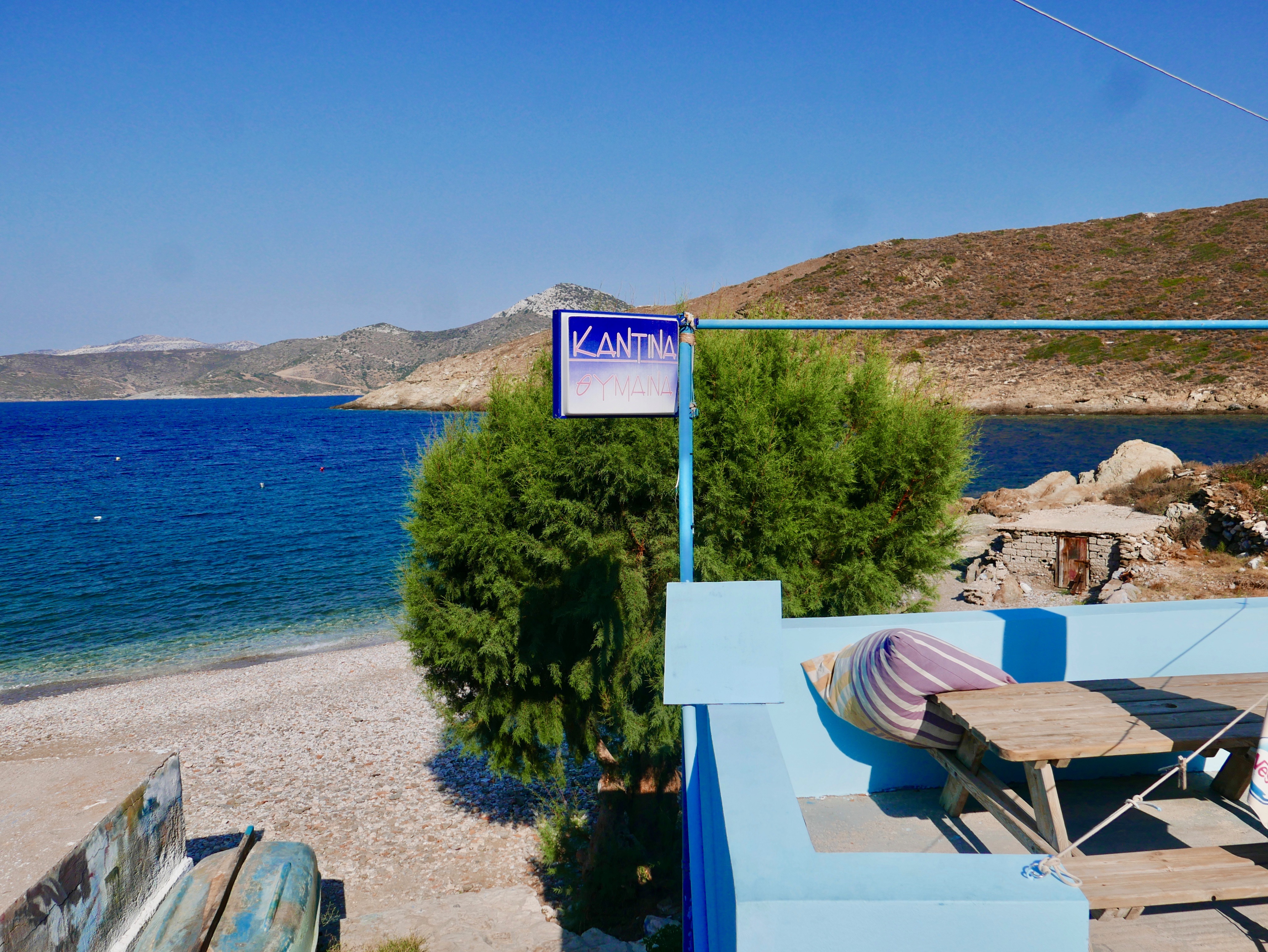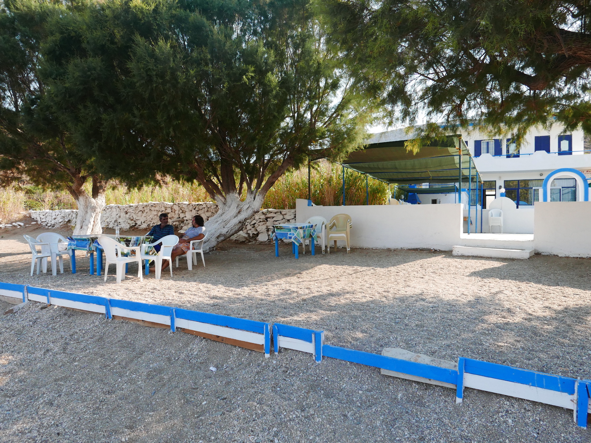 Η καντίνα στην παραλία της Θύμαινας που τα βράδια εκτελεί και χρέη μπαρ