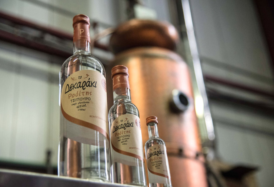 Τα αρώματα από τα στέμφυλα του Ροδίτη αναδύονται μέσα από τη διαδικασία της πολλαπλής επαναπόσταξης, ενώ παράλληλα, η τέχνη στα «κοψίματα» -δηλαδή ποιο μέρος της καρδιάς του αποστάγματος απομονώνεται και επαναποστάζεται σε κάθε τμήμα της- τελειοποιεί το προϊόν και δημιουργεί ανώτερης ποιότητας απόσταγμα, χωρίς γλυκάνισο και με αλκοολικό βαθμό 40%.