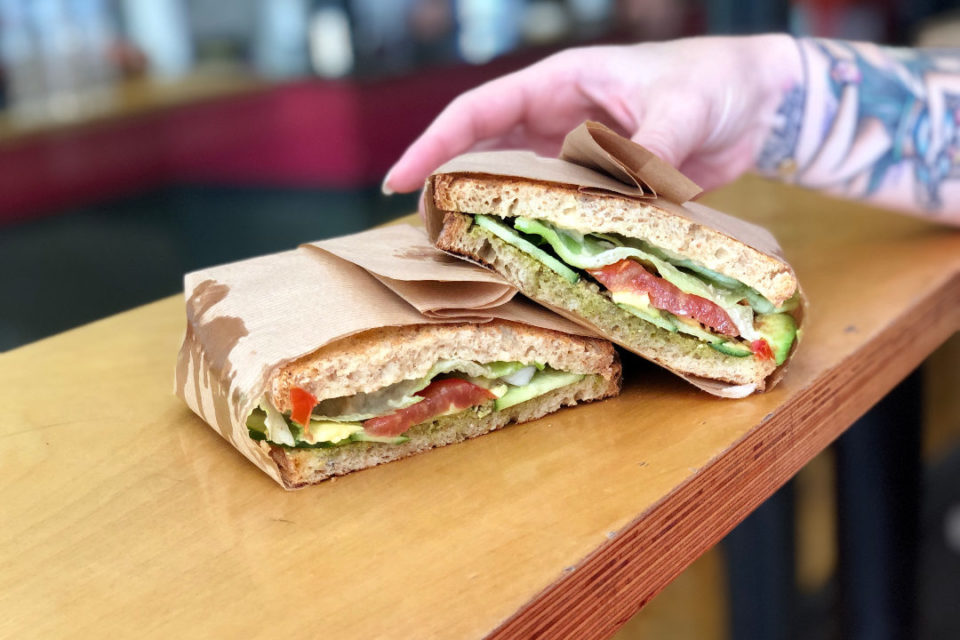 Που λες, ναι, κάνεις μία στάση εκεί και παραγγέλνεις το Los Vegan με αγγούρι, αβοκάντο, κρεμμύδι, ντομάτα, μαρούλι, pesto βασιλικού, χούμους και vinaigrette chilli. Και όλα αυτά ανάμεσα από δύο φέτες λευκού χωριάτικου με προζύμι ή ολικής αλέσεως ψωμί, ψημένες στο grill. Ακόμα και με την περιγραφή νιώθω το στομάχι μου να το ποθεί..