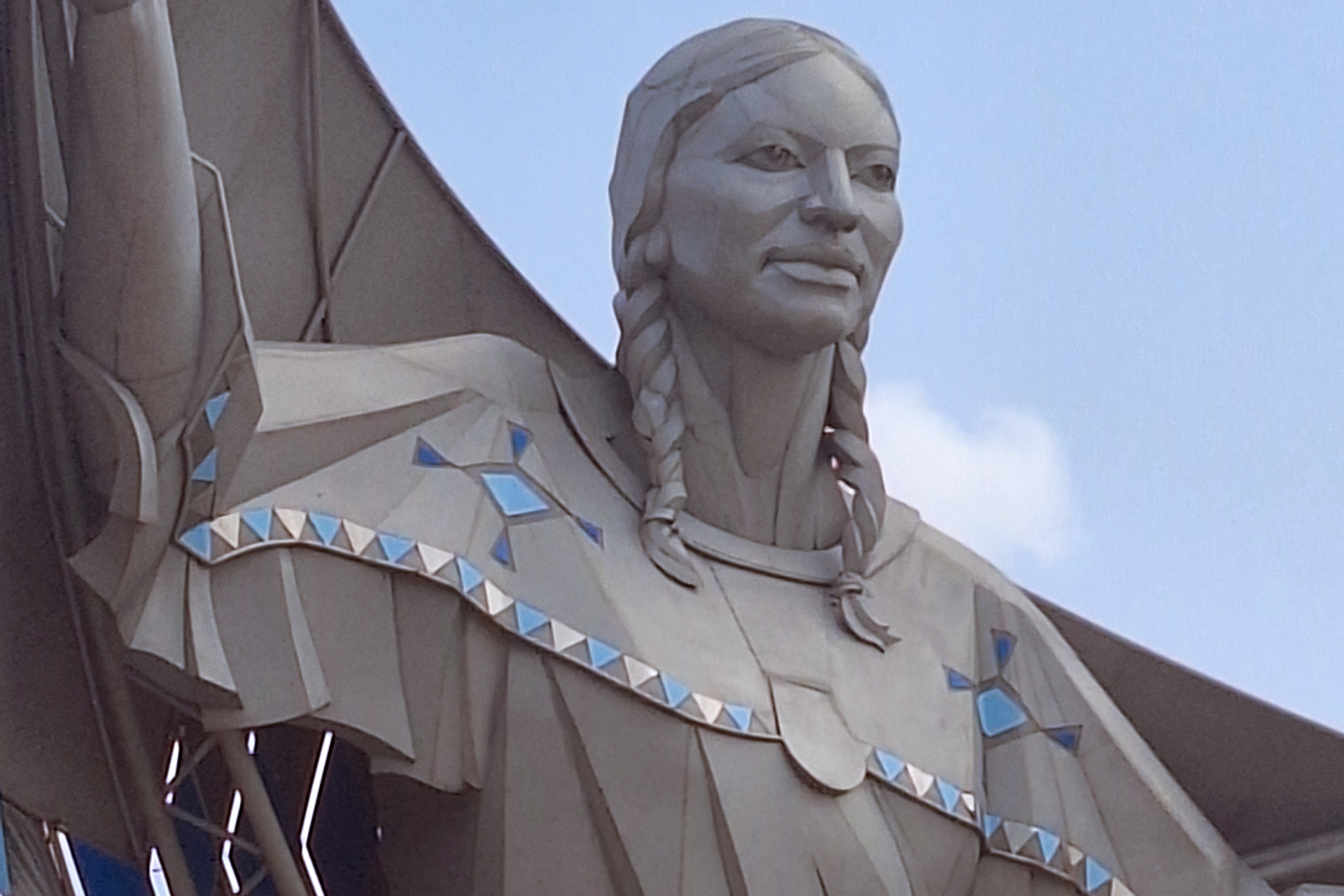To ατσαλένιο άγαλμα, ύψους σχεδόν 16 μέτρων, που υψώθηκε το 2014, δώρο της πόλης Rapid City στην πολιτεία της Νότιας Ντακότα για τα 125ά γενέθλια της, υψώνεται κόντρα στον άνεμο, με την ιθαγενή να απλώνει την κάπα της με το μπλε αστέρι που λάμπει από μακριά το βράδυ, για να αγκαλιάσει με έκφραση καθησυχαστικά την εύγλωττη αγωνία του σύγχρονου ανθρώπου για τη βιωσιμότητα στον πλανήτη, ζητώντας αξιοπρέπεια ανάμεσα στη Γη και τον Ουρανό.