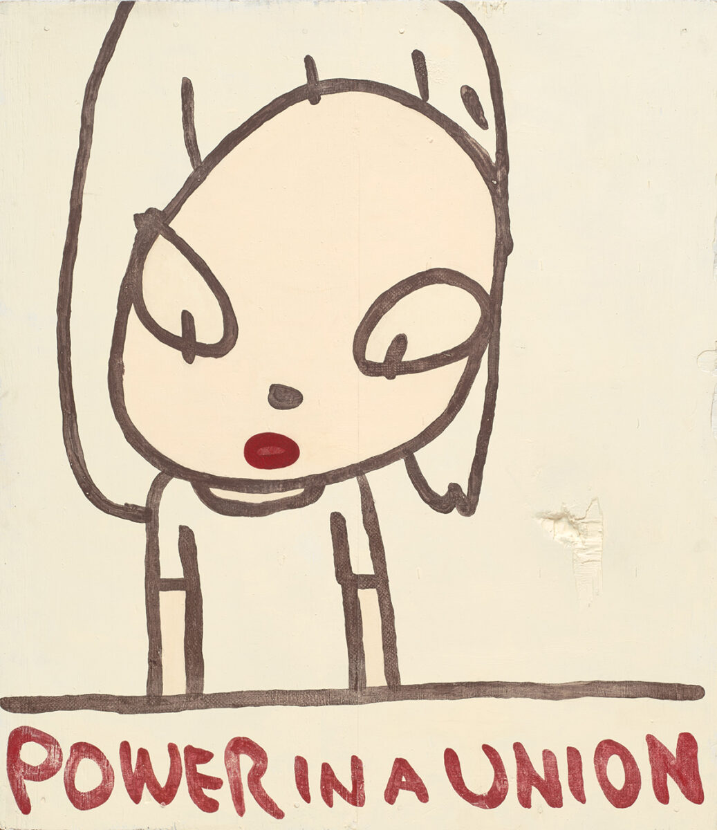 Yoshitomo Nara, Power in a Union, 2024. Acrylic on wood, 104.5 x 90.7 x 6 (1.2)cm. Courtesy the artist.