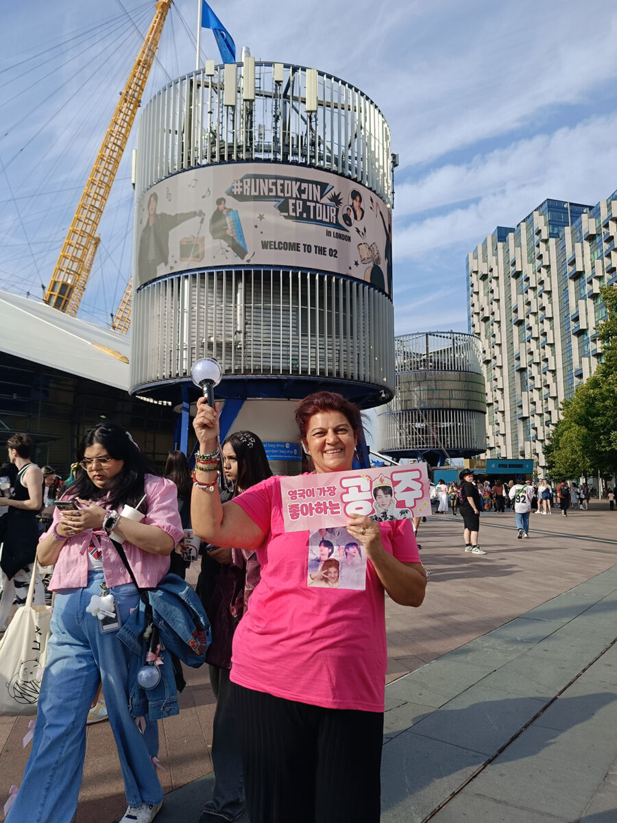 Και κλείνω με τη μεγάλη “συγκέντρωση ειρήνης” στην Ο2 Arena στις αρχές του Αυγούστου, εκεί που 40.000 φανατικοί οπαδοί των BTS (Αrmy, στην γλώσσα της k-pop κουλτούρας) περιμέναμε υπομονετικά για ώρες σε μια ουρά, για να δουμε τον Jin σε σόλο συναυλία/ τηλεπαιχνίδι/ one man/ stand up show.