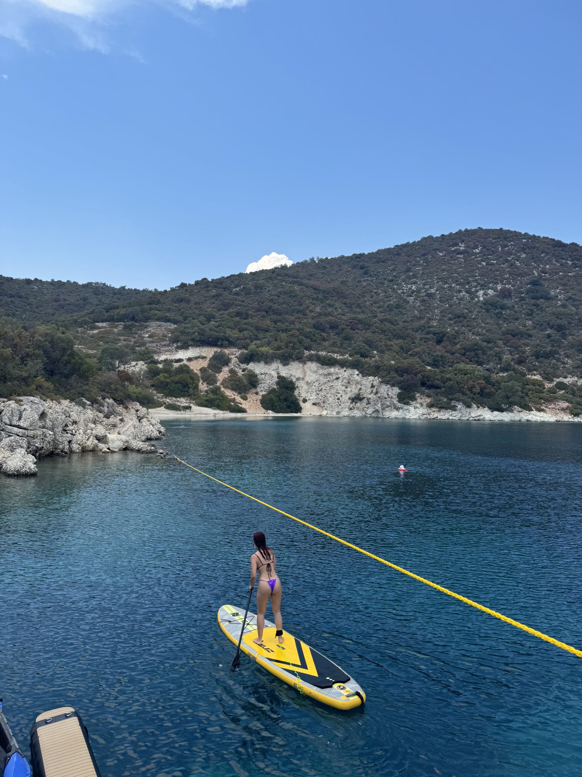 Χαμένες με την κολλητή μου για ώρα μέσα στη θάλασσα, κάπου στο Μεγανήσι, κάνοντας sup και έχοντας παρατήσει τα κινητά μας, γελάγαμε με όλη μας την ψυχή. Ήμασταν πραγματικά ξέγνοιαστες και χαρούμενες. Αφού τα χέρια μας άρχισαν να μουλιάζουν, κάναμε ένα ζεστό μπάνιο και ετοιμαστήκαμε για τον επόμενο προορισμό όπου θα κάναμε νυχτερινή βόλτα και θα διανυκτερεύαμε: τα Σύβοτα Λευκάδας. Αργότερα, με ένα amaretto με χυμό λεμόνι στο χέρι, θυμάμαι να χαζεύω τα αστέρια στον ατάραχο και διαμπερή ουρανό, ενώ σιγοέπαιζε στα ηχεία το νέο άλμπουμ των αγαπημένων μου Fontaines D.C.