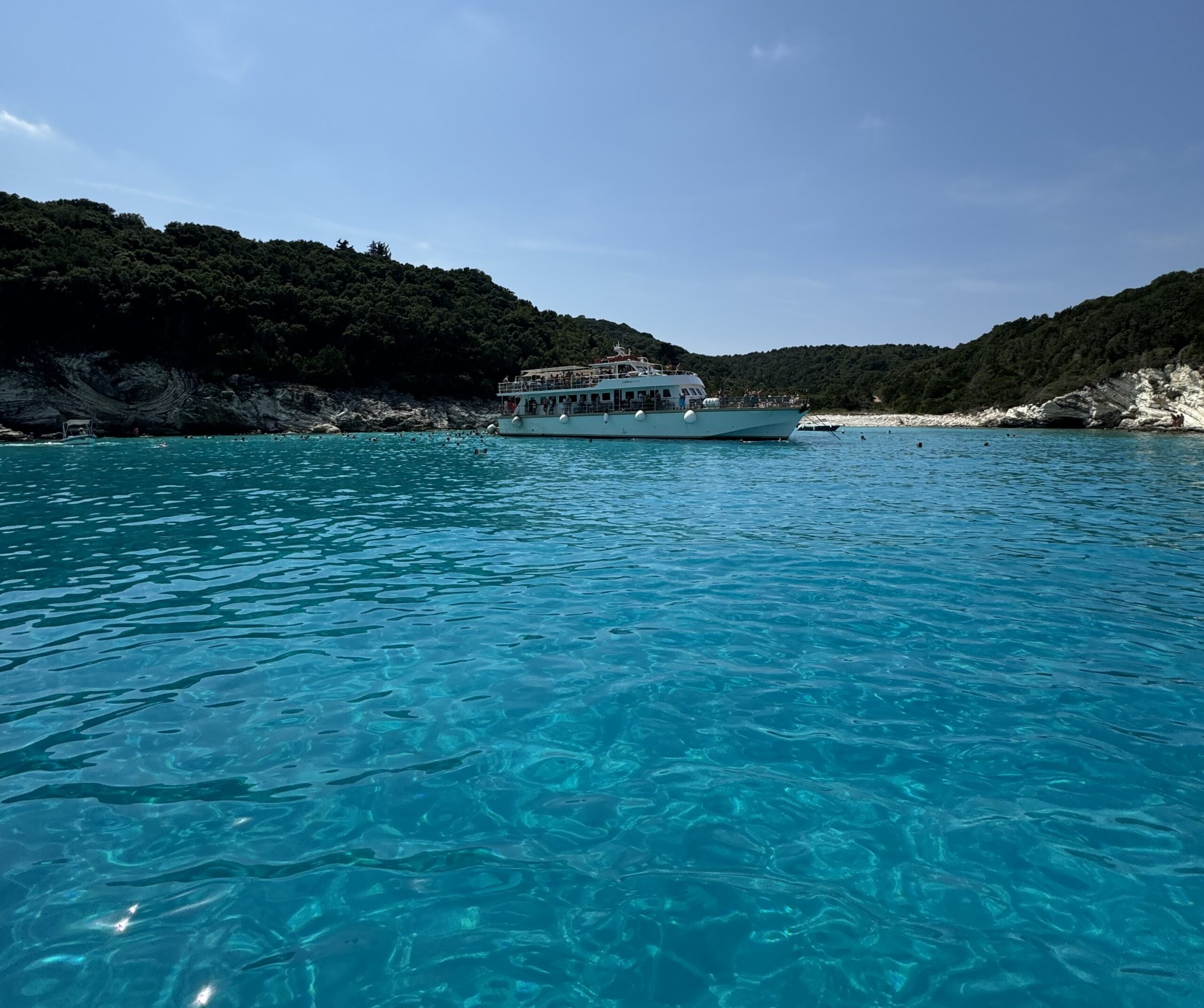 Στεγνώνοντας, έτρεξα με ορμή στην πλώρη, αφού ήξερα πως σε λίγη ώρα θα βρισκόμουν στον Γάιο στους Παξούς, τους οποίους ανυπομονούσα να γνωρίσω. Δεν έχουν άδικο όσοι ανακηρύσσουν τους Παξούς ως το αγαπημένο τους νησί. Ανάμεσα στο γραφικό λιμάνι και το δάσος, μια λωρίδα γαλάζιου γέμιζε έναν καμβά που δεν χρειαζόταν ανθρώπινα χέρια για να αποκτήσει χρώμα.