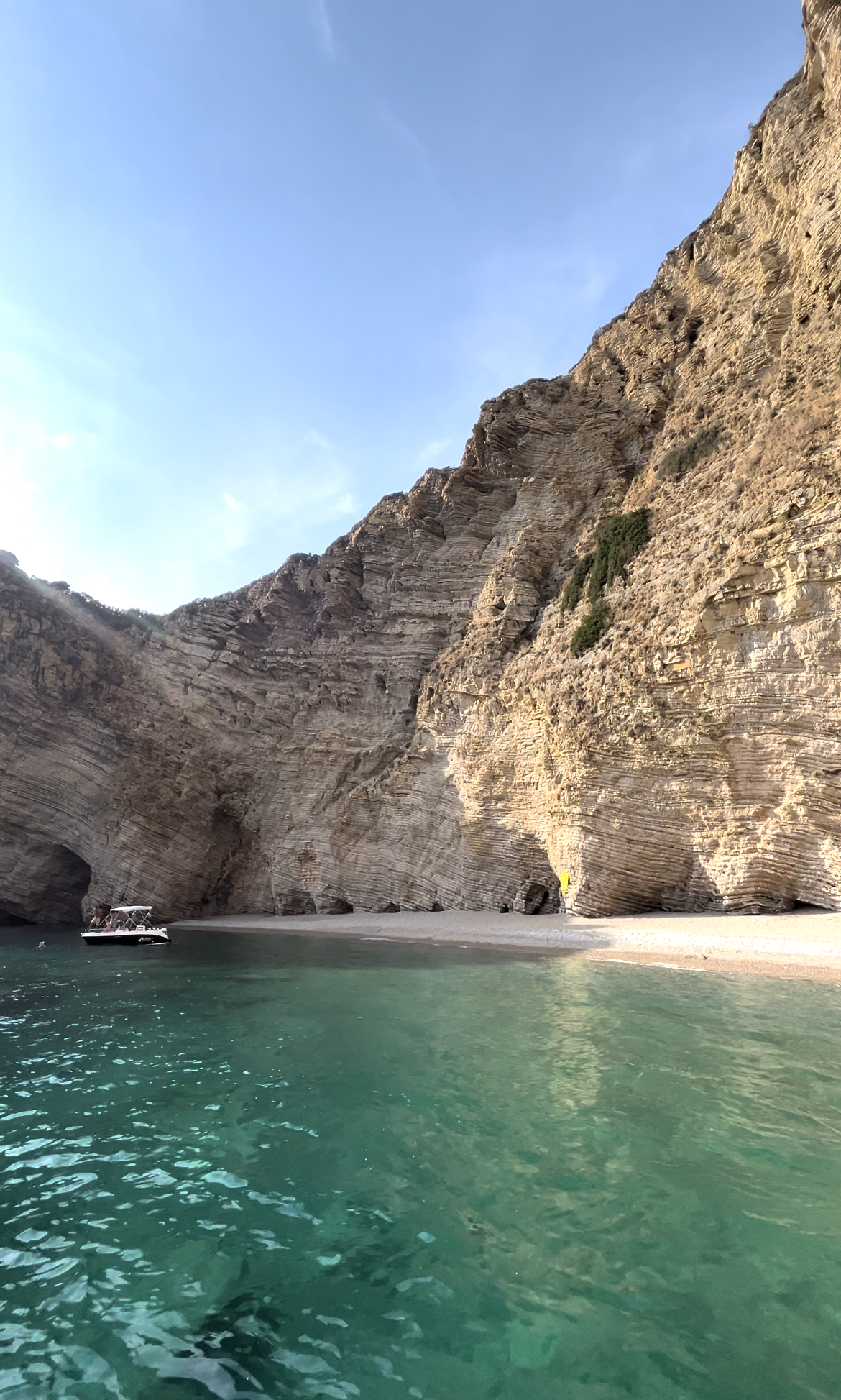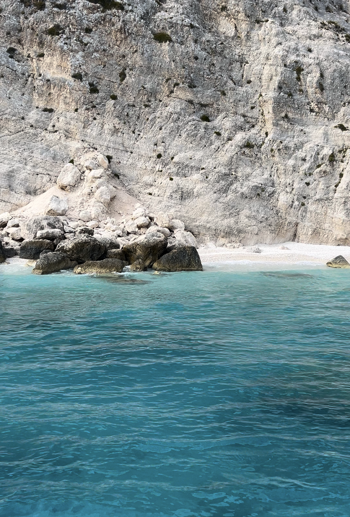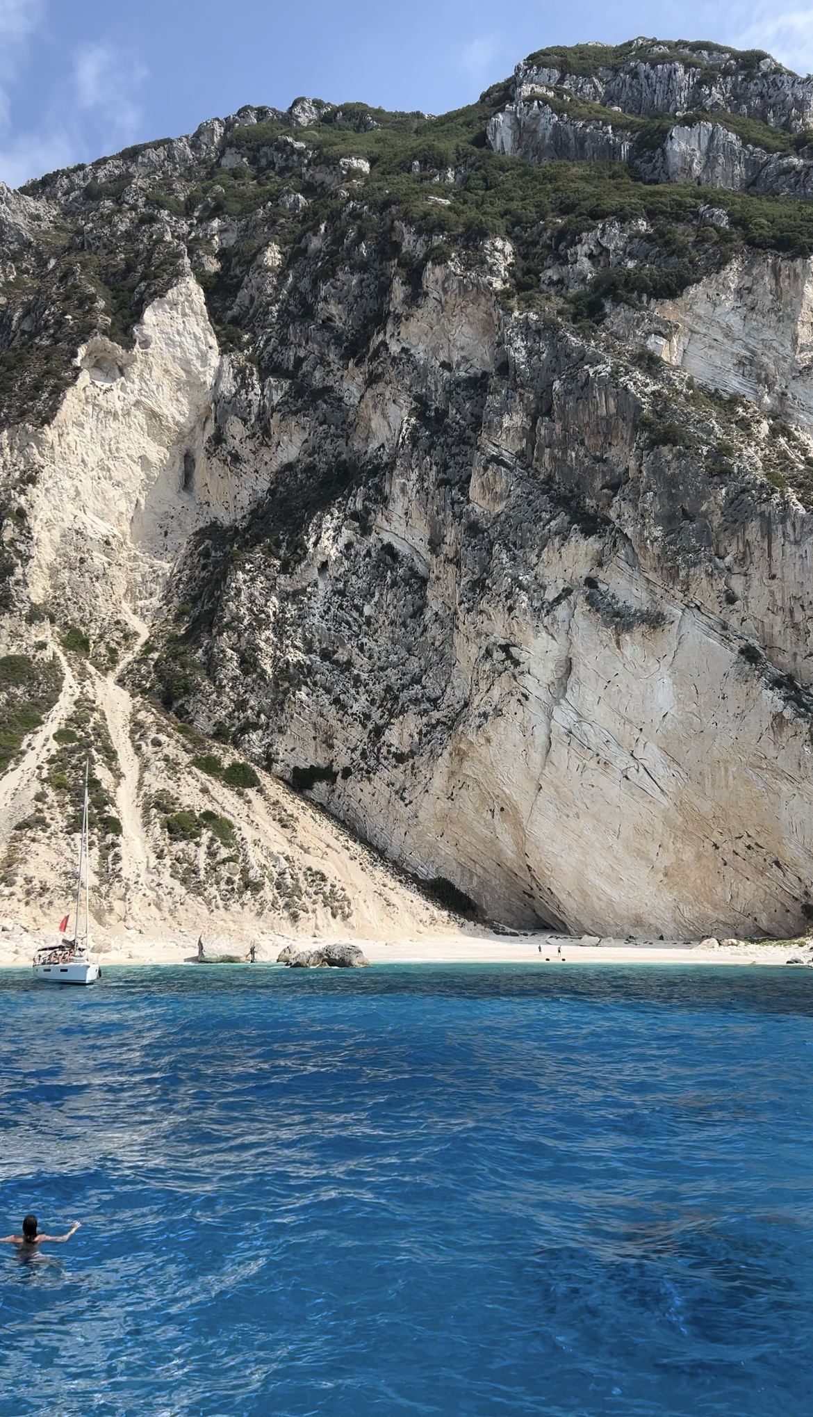 Η Φτέρη, η επιβλητική παραλία με τα γαλαζοπράσινα νερά, τους λευκούς βράχους και την πλούσια βλάστηση, ήταν η πρώτη μας στάση για μπάνιο. Βουτώντας στα ανοιχτά της, ανάμεσα σε μικροσκοπικά ψαράκια και τους δικούς μου ανθρώπους, ένιωσα ελεύθερη. Έπειτα, από την πλώρη κοιτούσα με δέος το σκηνικό που μας φιλοξενούσε. Μακριά από ομπρελοκαθίσματα και συνωστισμό «αγκαλιαστήκαμε» με τη φύση και τη θαλάσσια ζωή.