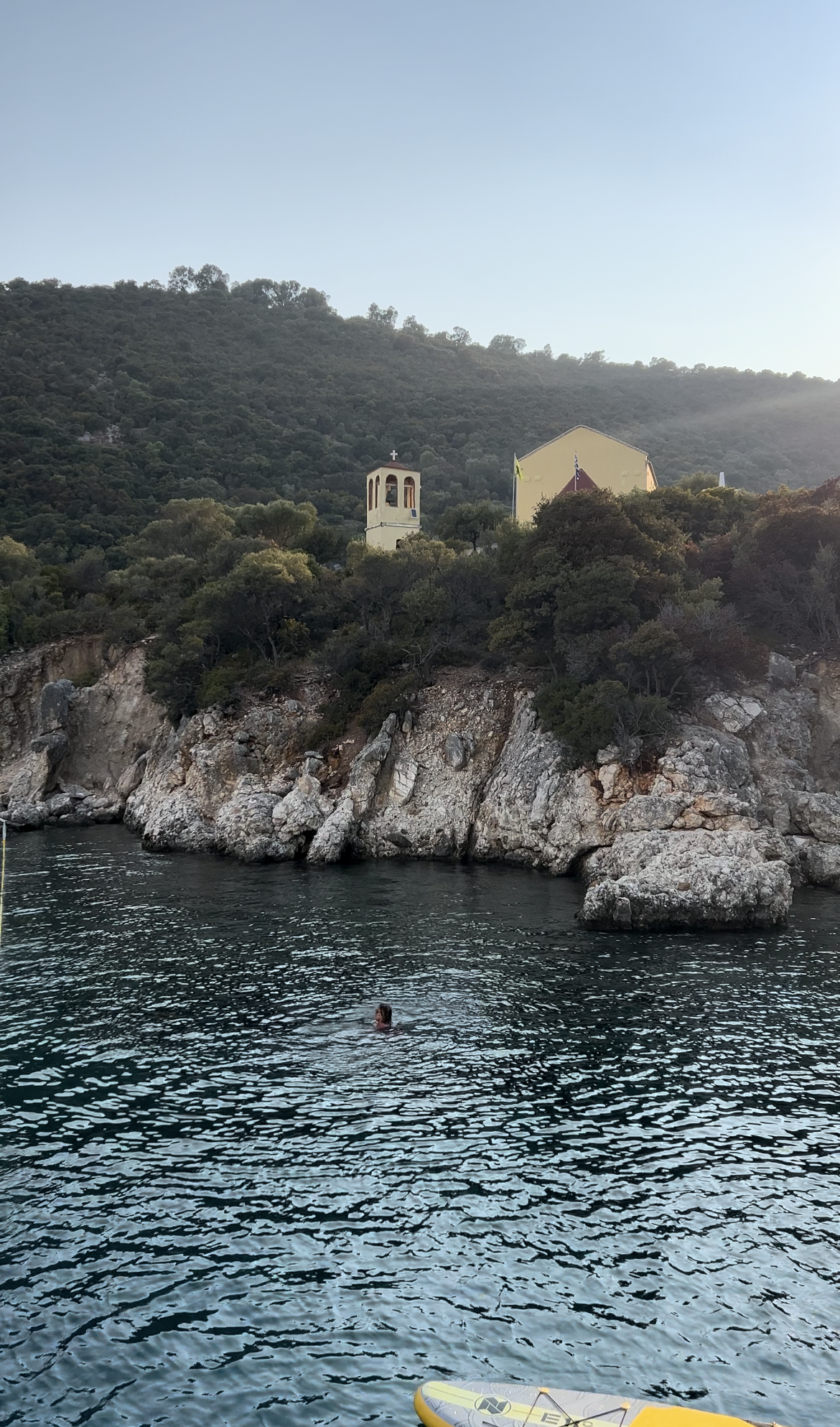 Οι μέρες άρχιζαν να μοιάζουν μεγαλύτερες, έτσι ακριβώς όπως θα έπρεπε να είναι. Ο ψηφιακός κόσμος δεν χωρούσε σε αυτό το ταξίδι. Αντιθέτως, η φυσική, άμεση επαφή με τους ανθρώπους μου, ήταν στο επίκεντρο. Στο Porto Leone στον Κάλαμο, εξακολουθούσαμε να μην έχουμε σήμα. Ένα γραφικό εκκλησάκι δέσποζε ανάμεσα στο δάσος και το στόλιζε. Τα μπλε νερά της θάλασσας με καλούσαν, τόσο, που αποφάσισα να πειραματιστώ και να δοκιμάσω να κάνω sup για πρώτη φορά στη ζωή μου. Έπιασα το κουπί, στάθηκα όρθια στα δυο μου πόδια και τσιρίζοντας σαν μικρό παιδί «σάλπαρα» για νέες περιπέτειες.