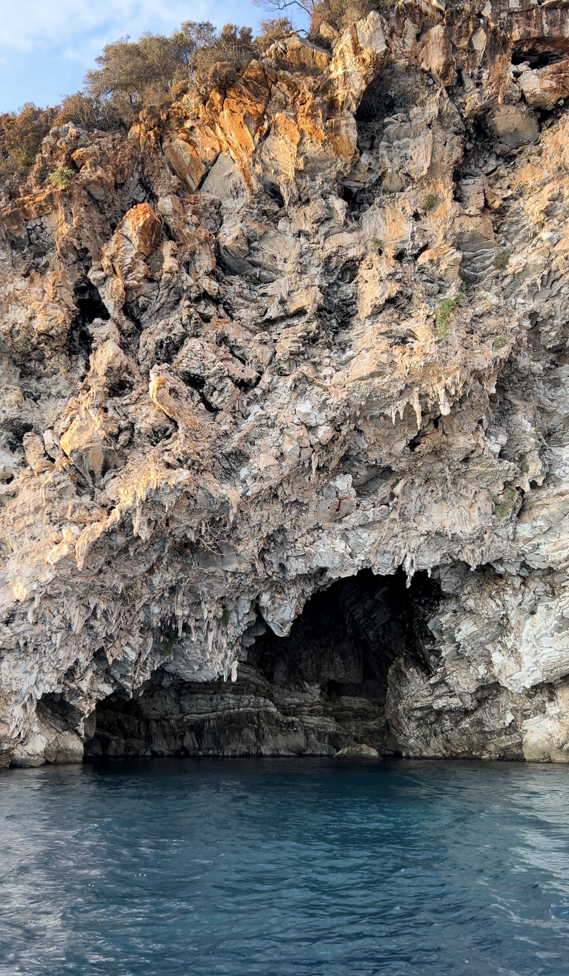 Σε αυτό το ταξίδι είδαμε και τη Νήσο Καστό, με τους 80 μόλις κατοίκους, σύμφωνα με την τελευταία απογραφή του 2011. Ο Καστός είναι η μικρότερη κατοικούμενη νησίδα των Επτανήσων και προσαρτήθηκε στην Ελλάδα το 1864. Σήμερα ανήκει διοικητικά στην περιφερειακή ενότητα Λευκάδας. Πριν συνεχίσουμε για Μεγανήσι, εκεί που είχα περάσει αρκετές μέρες με τους γονείς μου όταν ήμουν 10 ετών, μείναμε να χαζεύουμε τη Σπηλιά του Παπανικολή. Σε κάθε στάση, θέλαμε να κάνουμε και από μια βουτιά. Να γευτούμε τα νερά κάθε υγρής κουκίδας στον χάρτη.