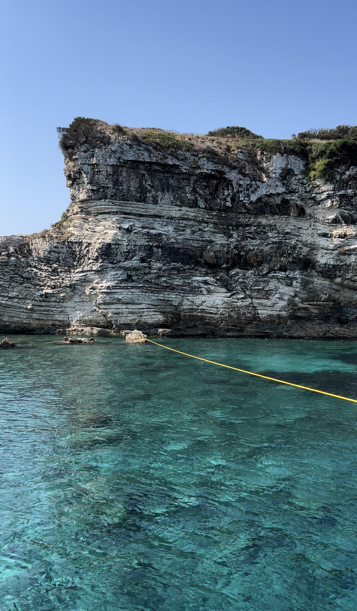 Το επόμενο πρωί, μπλε, πράσινο και γαλάζιο μας περίμενε γύρω από το νησί. Λευκοί βράχοι, πυκνή βλάστηση και μικρές σπηλιές, μας περίμεναν κι αυτές. Τα γλαροπούλια, στοιχισμένα, μας κοιτούσαν παράξενα, καθώς μοιάζαμε σαν εισβολείς πλησιάζοντας στο φυσικό τους περιβάλλον. Φύγαμε γρήγορα για να μην τα τρομάξουμε, κι εκείνα συνέχισαν την απρόβλεπτη ζωή τους. Το βράδυ φτάσαμε στη συννεφιασμένη Κέρκυρα, αυτή τη φορά για να διανυκτερεύσουμε στον Ναυτικό Αθλητικό Όμιλο Κέρκυρας και να κάνουμε τη βραδινή μας βόλτα.