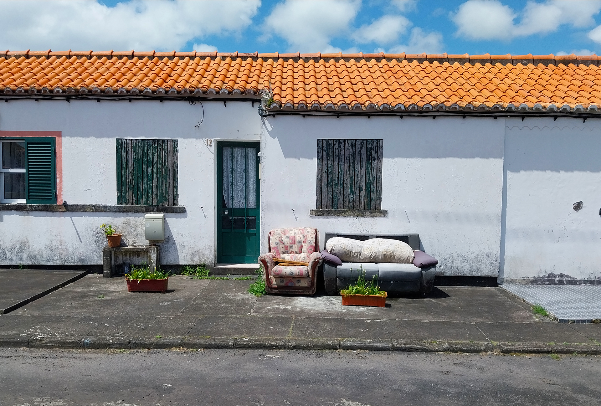 Αυτοσχέδια αυλή σε πεζοδρόμιο στην Horta ©ΑΠ-Χ