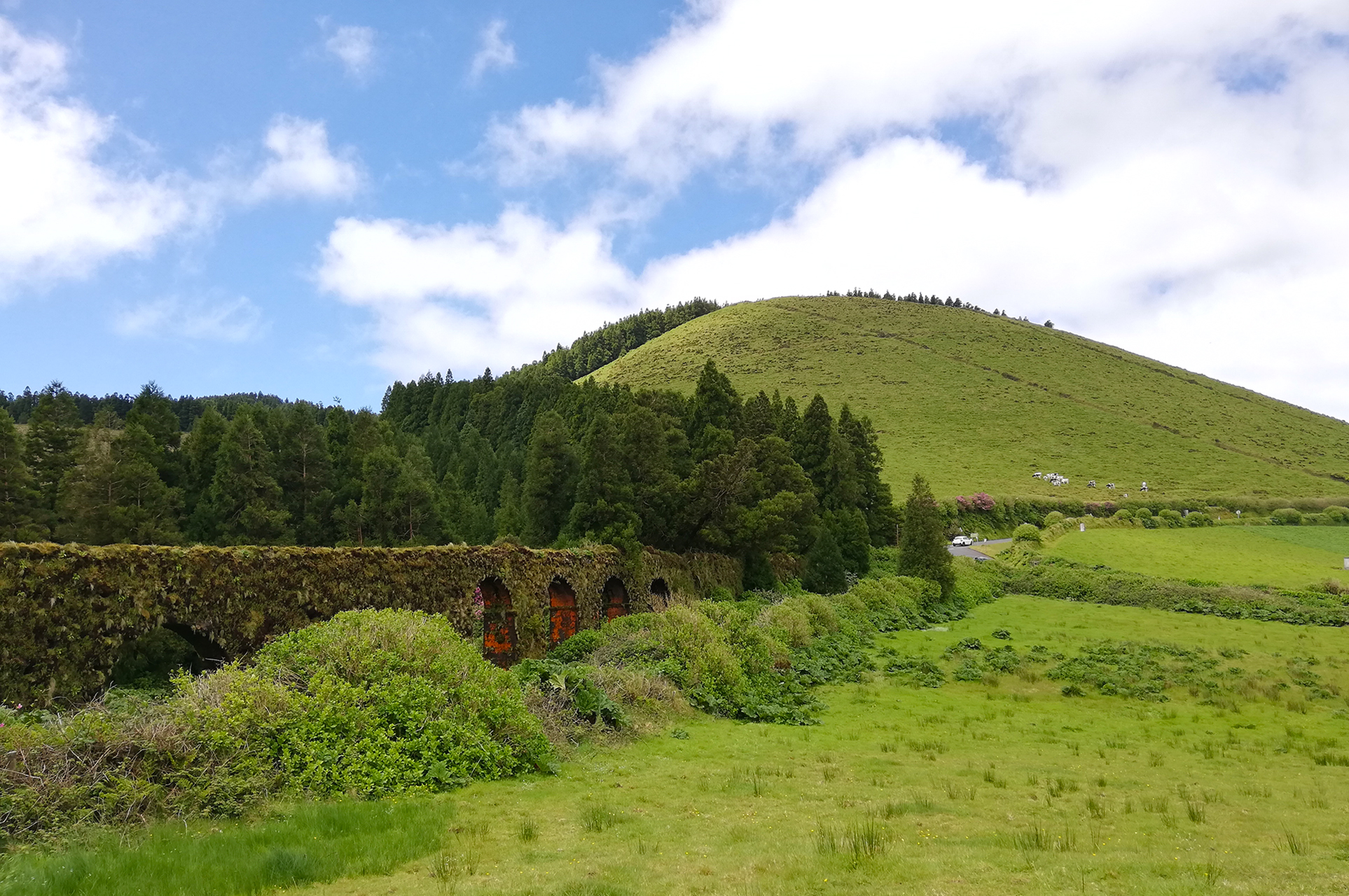 Παλιά πέτρινη γέφυρα και πράσινα λιβάδια στο São Miguel ©ΑΠ-Χ