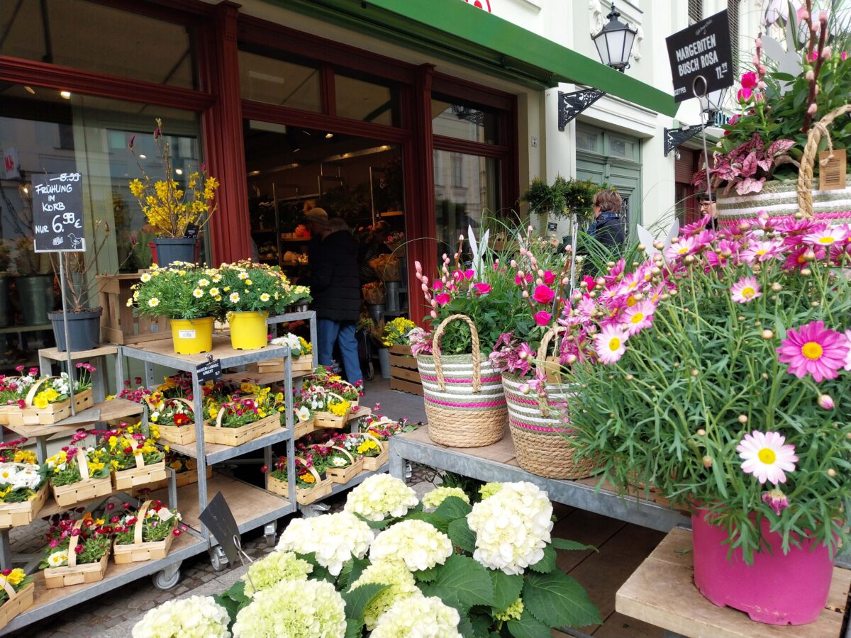 Ανθοπωλεία γεμάτα ολόφρεσκα πολύχρωμα λουλούδια στους δρόμους του Πότσδαμ