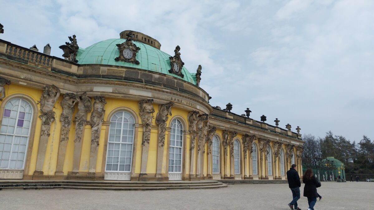 Απαραίτητη στάση πριν την είσοδό μας στο Πότσδαμ, τα εντυπωσιακά θερινά ανάκτορα του Sanssouci (Σανσουσί) που έκτισε ο βασιλιάς της Πρωσίας, Φρειδερίκος ο Μέγας, ως “καταφύγιο” του από τις έγνοιες της εξουσίας (sans souci = χωρίς έγνοιες στα γαλλικά –κι έτσι αναγράφεται κιόλας στο θόλο του κεντρικού κτίσματος, με κόμμα μάλιστα ανάμεσα στις λέξεις) και τόπο όπου απολάμβανε τις τέχνες, τη φιλοσοφία, το διάβασμα. Φυσικά, Μνημείο Παγκόσμιας Κληρονομιάς της Unesco, οι λεγόμενες Βερσαλλίες της Γερμανίας, έστω και πολύ μικρότερες, σε γοητεύουν με τους αμπελώνες, τους τεράστιους κήπους, τα περίπτερα, τις αυλές και το ίδιο το παλάτι, κτισμένο σε ρυθμό ροκοκό -κατά την άποψη του Φρειδερίκου όμως, δηλαδή κάπως “μεταλλαγμένο”.