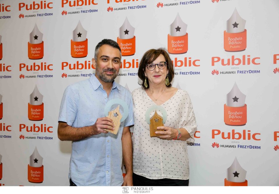Τα βραβεία απένειμαν οι Ελπίδα Σταματοπούλου, Υπεύθυνη Βιβλιοπωλείου Public στο Golden Hall και η Φωτεινή Μουρατίδου Υπεύθυνη Βιβλιοπωλείου Public Κατερίνης.