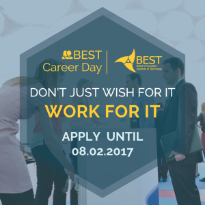 Στις 24 Μαρτίου του 2017, οι Βρυξέλλες δεν θα είναι μόνο η πρωτεύουσα της Ευρώπης, αλλά και μια πόλη γεμάτη προοπτικές για τους φοιτητές τεχνολογικών ιδρυμάτων. Το BEST (Board of European Students of Technology) διοργανώνει για πέμπτη φορά μία διεθνή έκθεση καριέρας, όπου περίπου 300 συμμετέχοντες θα έχουν την ευκαιρία να επιλέξουν το δικό τους μονοπάτι ανάμεσα στις πολλαπλές επιλογές για το μέλλον τους.