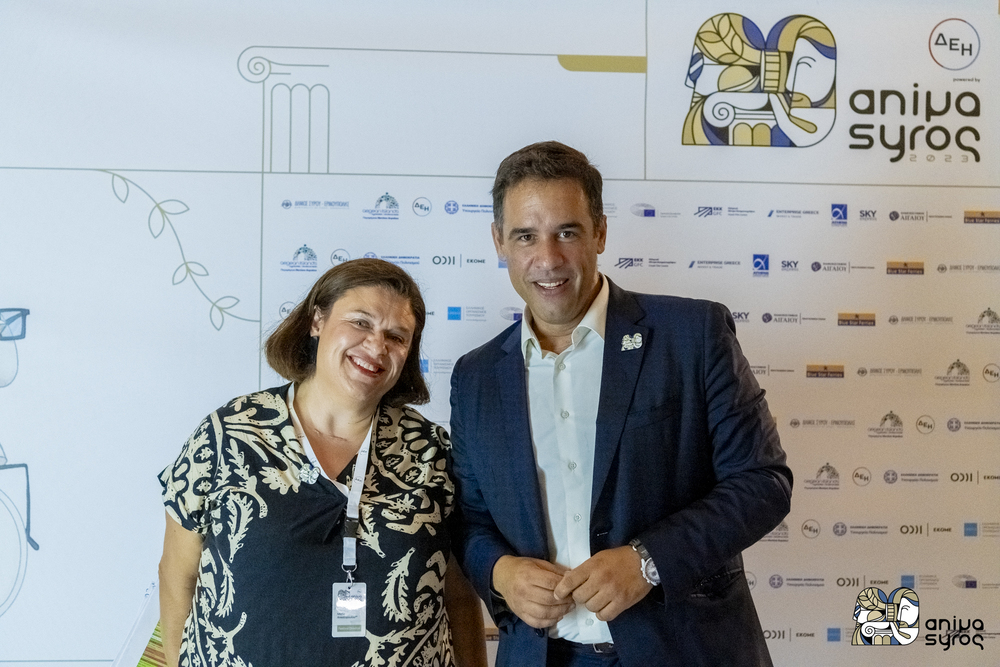 Στη σκηνή του κατάμεστου Θεάτρου Απόλλων ανέβηκαν οι Γιάννης Ζουμάκης και Μάνος Γερογιάννης, ιδρυτές του βραβευμένου animation studio Odd Bleat που υπογράφει την οπτική ταυτότητα του ANIMASYROS 2023, ακούστηκε ο χαιρετισμός του Αντιπεριφερειάρχη Κυκλάδων Γιώργου Λεονταρίτη και απηύθυναν χαιρετισμό ο Δήμαρχος Ερμούπολης – Σύρου Νίκος Λειβαδάρας και ο Αντιπρύτανης Έρευνας και Καινοτομίας του Πανεπιστημίου Αιγαίου Πέτρος Καβάσαλης. Στην εκδήλωση παρευρέθηκαν ακόμη εκπρόσωποι της τοπικής αυτοδιοίκησης, διπλωματικών αποστολών και θεσμικών φορέων.