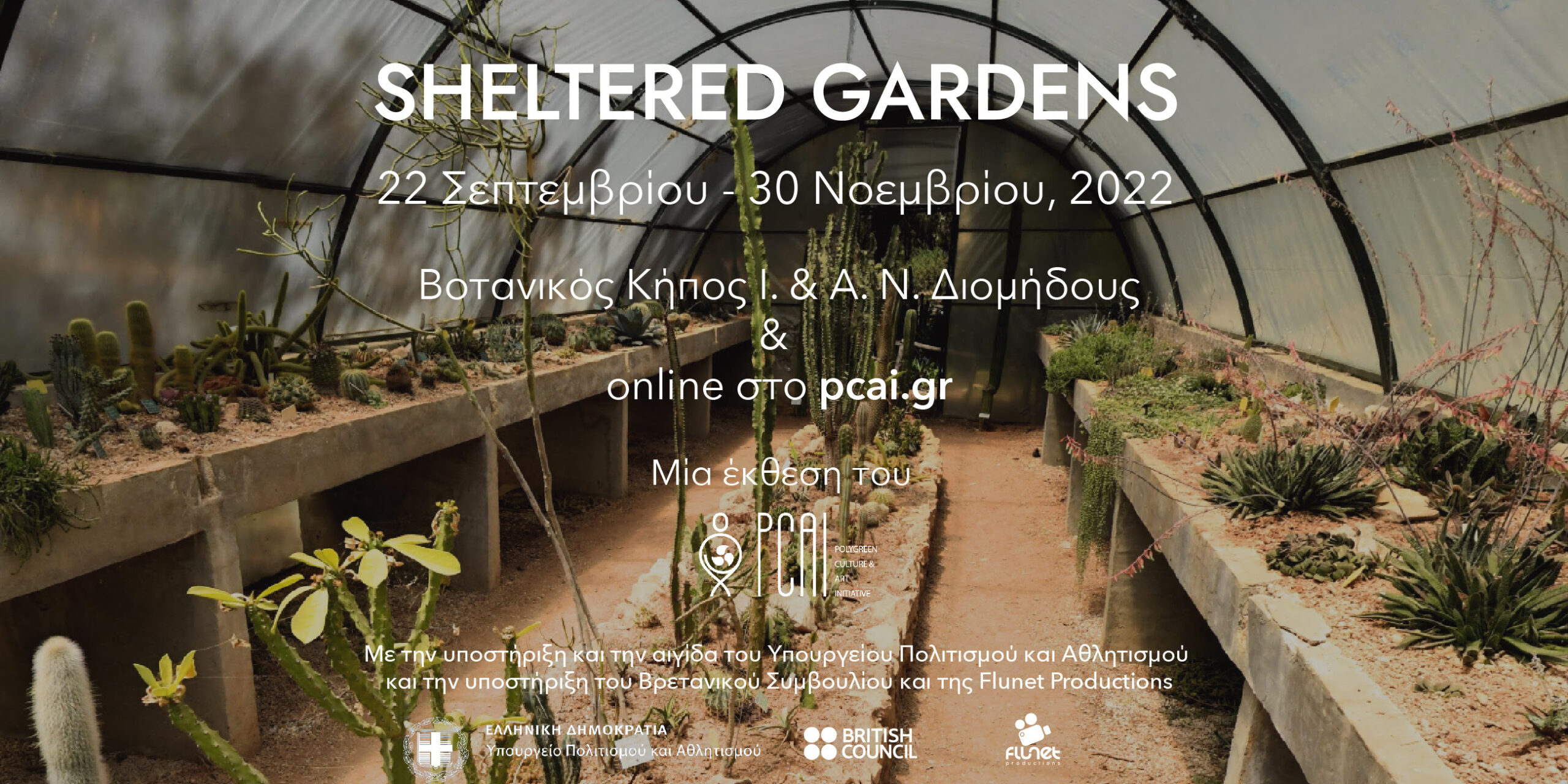 Ξεκινώντας στις 22 Σεπτεμβρίου, το Sheltered Gardens ξεδιπλώνεται μέσα από μια ειδικά σχεδιασμένη ψηφιακή έκθεση, διαθέσιμη μέσω του pcai.gr, μια συλλεκτική δίγλωσση έκδοση, μια ομαδική έκθεση σύγχρονης τέχνης και από ένα τριήμερο πρόγραμμα εικαστικών και χορευτικών performances στον Βοτανικό Κήπο Διομήδους στην Αθήνα.