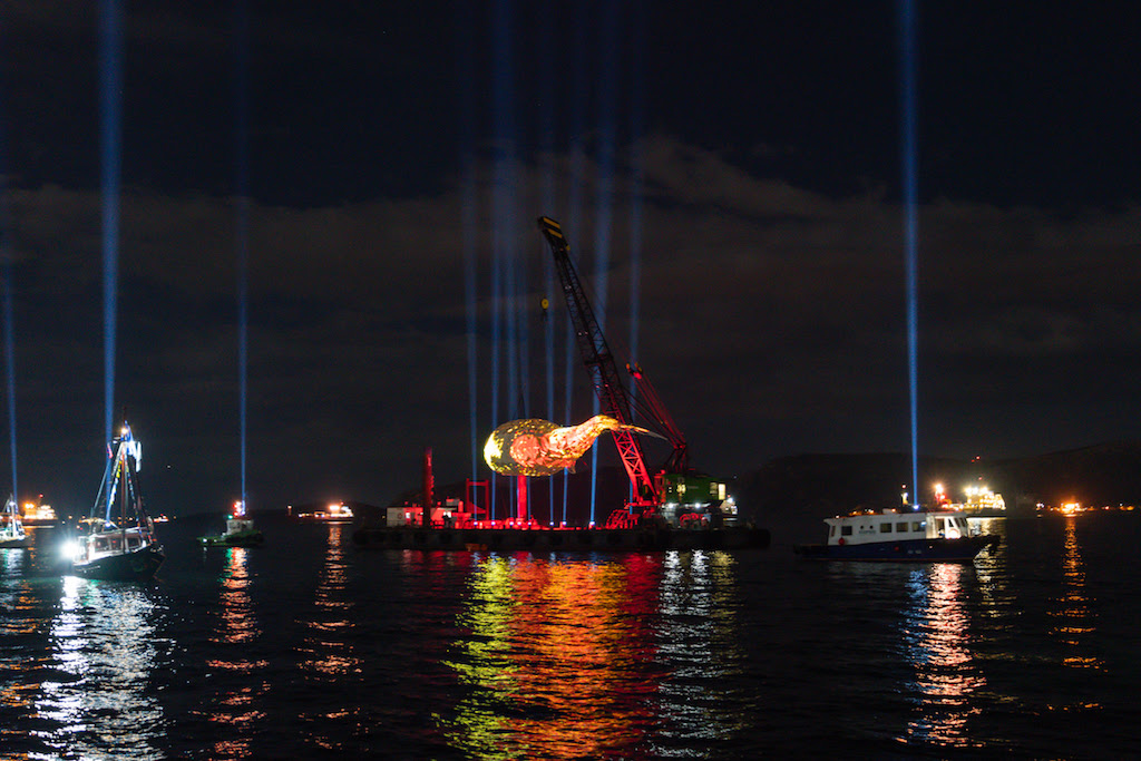 Με αυτή τη φράση εκκίνησε η εντυπωσιακή δράση της Τελετής Έναρξης με τίτλο Μυστήρια Μετάβασης. Η ανάδυση μιας μυθικής οντότητας από τα βάθη της θάλασσας, ενός μεταλλικού γλυπτού 22 μέτρων μήκους, έξι μέτρων ύψους και βάρους 10 τόνων, στολισμένου με την εμβληματική παπαρούνα του αρχαιολογικού χώρου της Ελευσίνας, σχεδιασμένου από τον Philippe Geoffrey, σε φωτισμούς και mapping του Petko Tanch, η υποβλητική αφήγηση του Βαγγέλη Λίγγου, Προέδρου του Εργατοϋπαλληλικού Κέντρου Ελευσίνας – Δυτικής Αττικής, οι μελωδίες από 122 CHÓRES σε καλλιτεχνική επιμέλεια Μαρίνας Σάττι και κοστούμια σχεδιασμένα από τον Πάρι Μέξη, καθώς και η πρωτότυπη μουσική του Άγγελου Τριανταφύλλου συνέθεσαν το μυσταγωγικό γεγονός της 2023 Ελευσίς, που πραγματοποιήθηκε στη θάλασσα της Ελευσίνας, παρουσία χιλιάδων θεατών. Μια θαλάσσια χορογραφία στήθηκε στον κόλπο της πόλης από 16 βάρκες και έναν πλωτό γερανό να λειτουργούν ως σκηνή για τους 30 μουσικούς της Κρατικής Ορχήστρας Αθηνών, ενώ βάρκες και πλοία του λιμανιού, στα οποία επέβαιναν 17 καπετάνιοι και 11 βοηθοί καπετάνιου, συμμετείχαν με τις κόρνες τους.