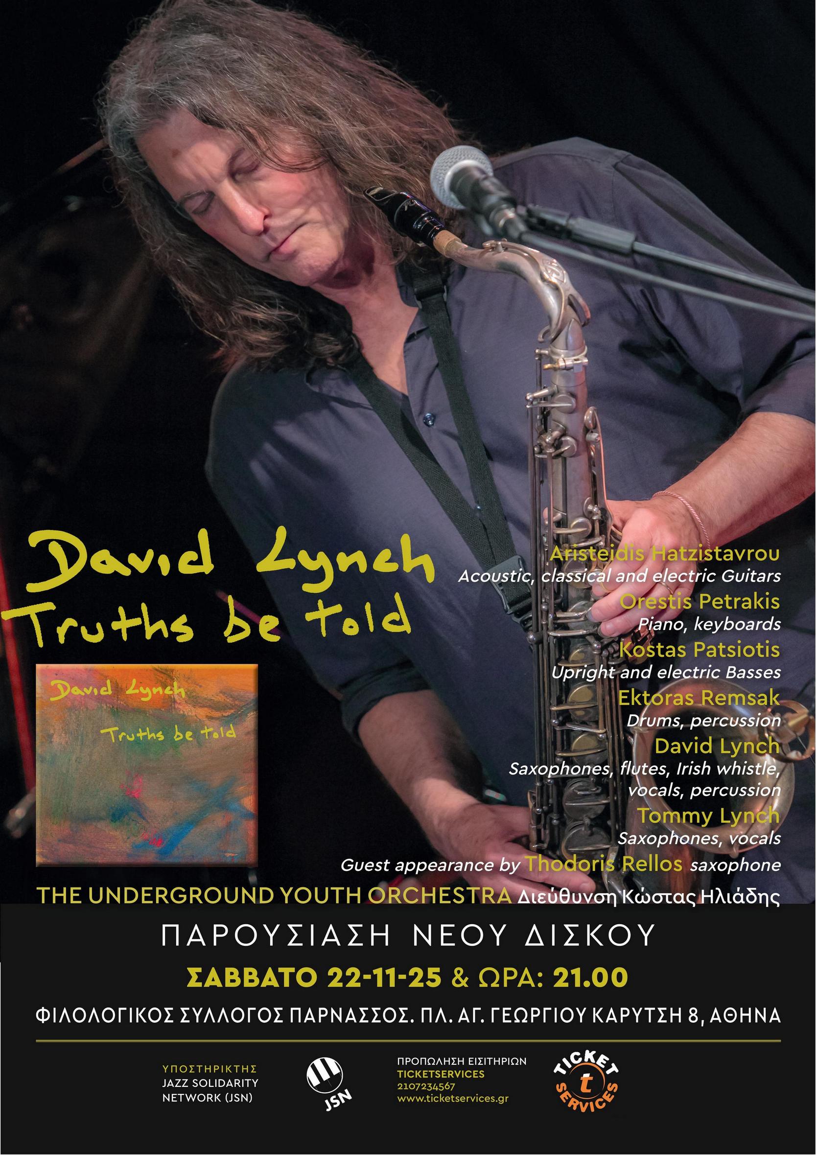 Στις 22 Νοεμβρίου 2025, ο διακεκριμένος μουσικός και συνθέτης David Lynch παρουσιάζει για πρώτη φορά ζωντανά το νέο του άλμπουμ Truths Be Told, σε μια μοναδική συναυλία-γιορτή στον ιστορικό Φιλολογικό Σύλλογο Παρνασσός.