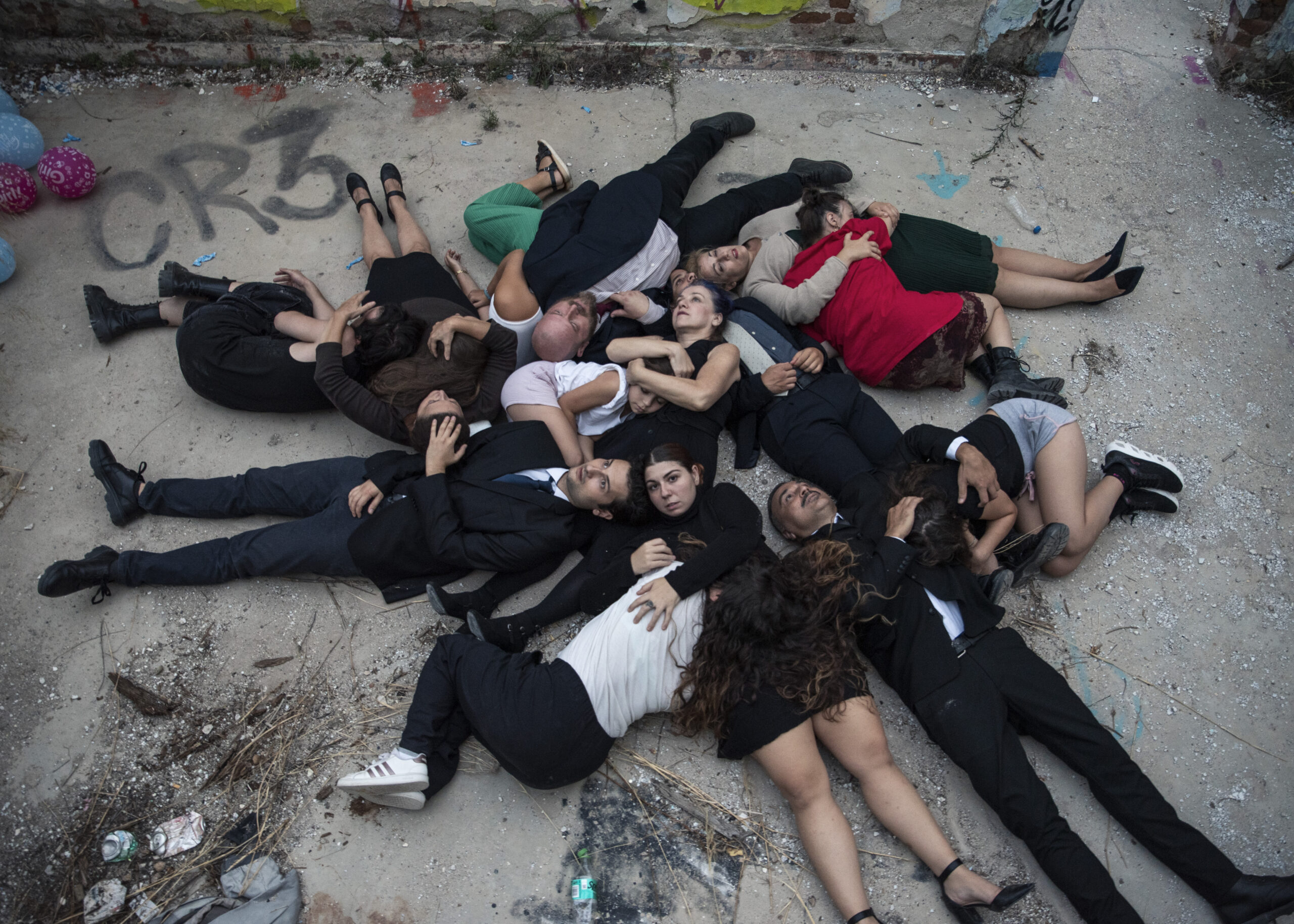 Ο ταλαντούχος σκηνοθέτης της νέας γενιάς δημιουργεί ένα σκοτεινό, τελετουργικό περιβάλλον με έντονους συμβολισμούς και τοποθετεί το δυστοπικό έργο του Τριαρίδη στον απόηχο ενός πάρτι – ενός κόσμου που γιόρτασε ξέγνοιαστα πριν το αναπόφευκτο. Ενώ οχτώ ηθοποιοί επί σκηνής αναμένουν μετέωροι να μάθουν αν τα παιδιά τους θα ζήσουν ή θα γίνουν τα θύματα της επόμενης σφαγής.