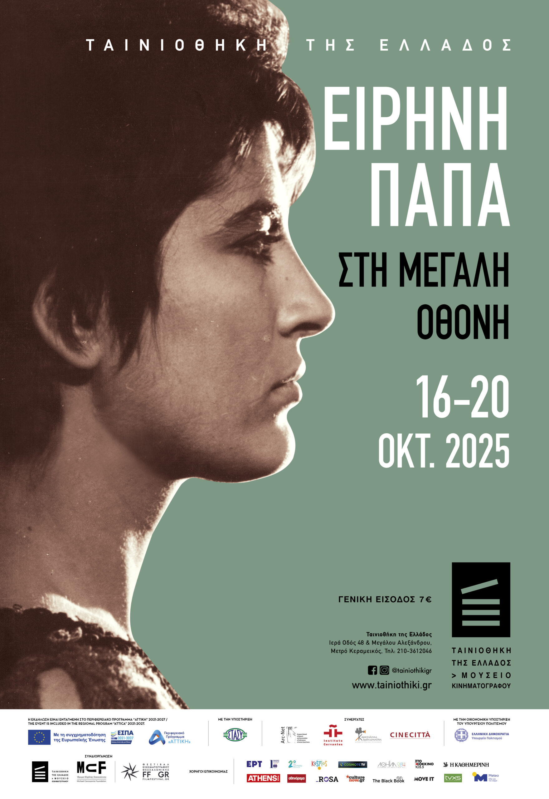 H Eιρήνη Παπά στη μεγάλη οθόνη. Στις 16 με 20 Οκτωβρίου, η Ταινιοθήκη της Ελλάδος, το Ίδρυμα Μιχάλης Κακογιάννης και το Φεστιβάλ Κινηματογράφου Θεσσαλονίκης παρουσιάζουν ένα μεγάλο αφιέρωμα στην απόλυτη ελληνίδα σταρ που μάγεψε το διεθνές κοινό: την Ειρήνη Παπά.