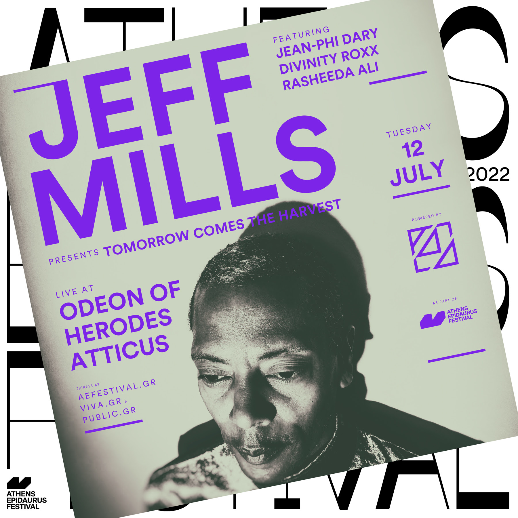 12 xρόνια μετά την τελευταία του εμφάνιση στην Αθήνα, ο Jeff Mills θα εμφανιστεί στον μοναδικό χώρο του Αρχαίου Θεάτρου Ωδείο Ηρώδου Αττικού, για να παρουσιάσει ζωντανά το ακριβοθώρητο Jazz Afro Futurism Project του. Συνοδευόμενος από τον μακρόχρονο συνεργάτη του Jean-Phi Dary, τη μπασίστρια Divinity Roxx και τη φλαουτίστα Rasheeda Ali. Εκεί, στο απόλυτο venue, το παρελθόν θα συναντήσει το μέλλον, το αναλογικό το ψηφιακό, η τζαζ την techno και το κοινό έναν ζωντανό μουσικό θρύλο.
