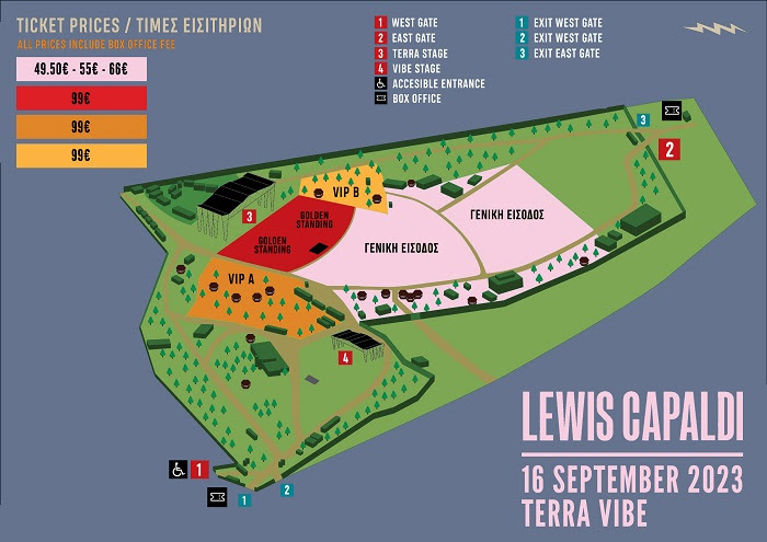 Με κάθε 3 VIP ή Golden Standing εισιτήρια παρέχεται 1 δωρεάν Θέση Στάθμευσης/Parking.