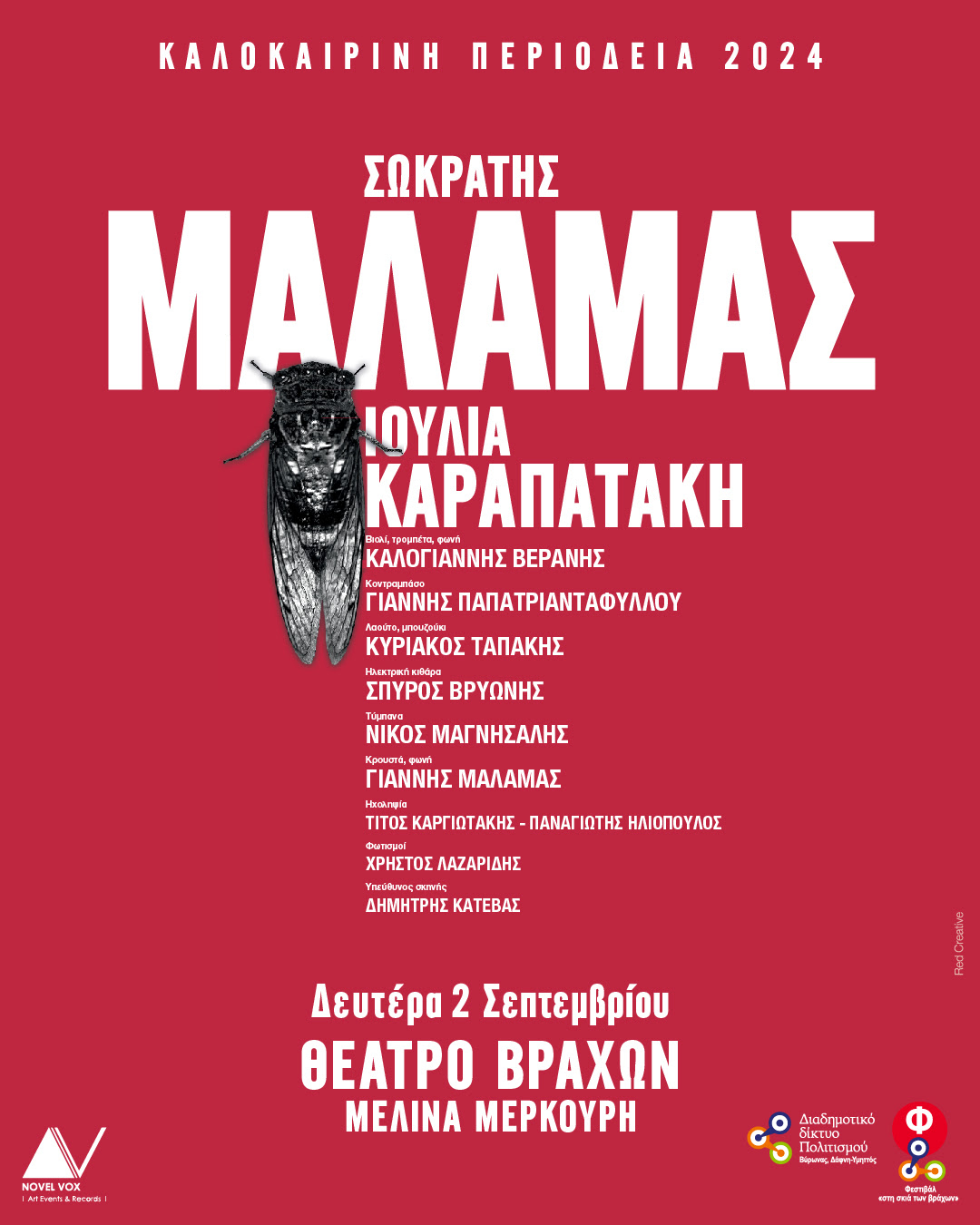 Μετά τα δύο sold out στο Κατράκειο Θέατρο Νίκαιας, τη Δευτέρα 1 Ιουλίου και την Τρίτη 2 Ιουλίου, ο Σωκράτης Μάλαμας προσθέτει μία ακόμη μεγάλη αθηναϊκή συναυλία τη Δευτέρα 2 Σεπτεμβρίου, στο Θέατρο Βράχων – Μελίνα Μερκούρη.
