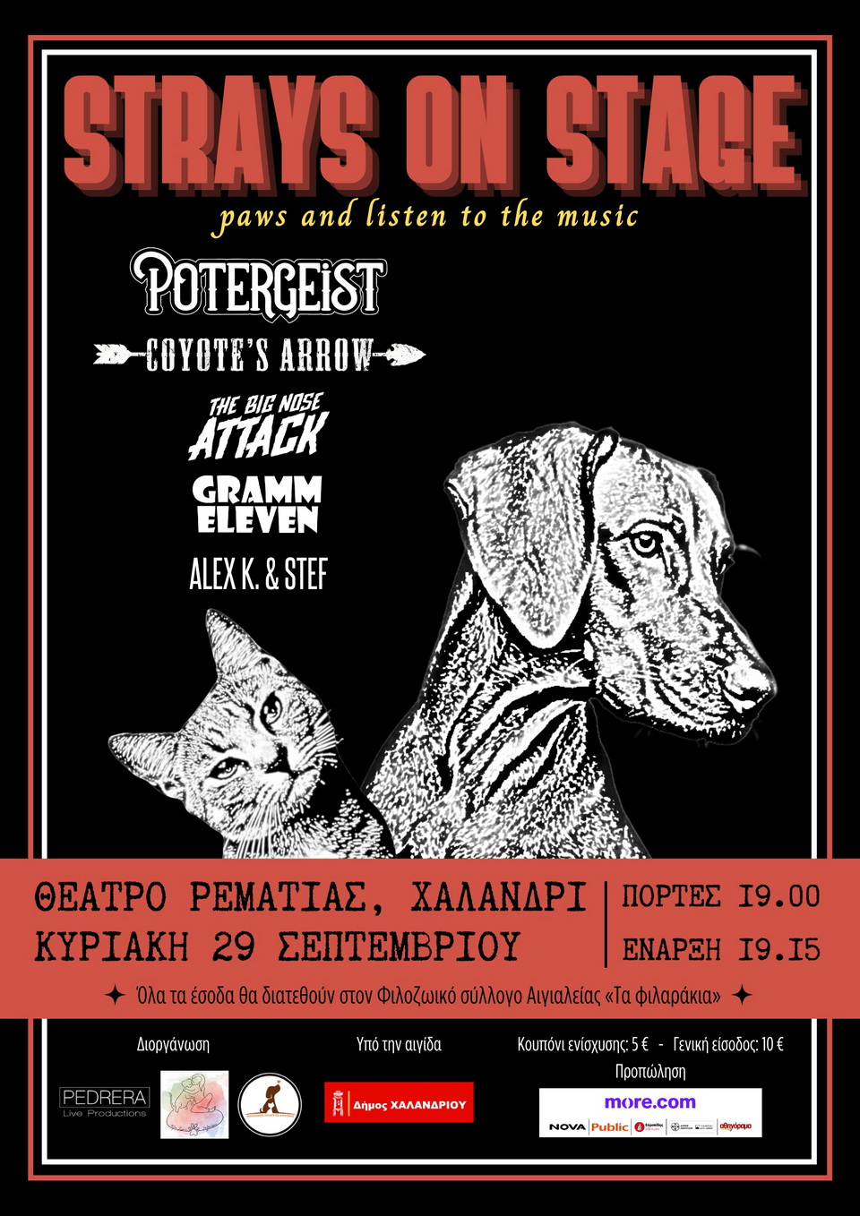 Τη συναυλία διοργανώνουν οι Pedrera Live Productions, Φίλοι ζώων Χαλανδρίου και Φιλοζωικός σύλλογος Αιγιαλείας «Τα φιλαράκια» υπό την αιγίδα του Δήμου Χαλανδρίου.