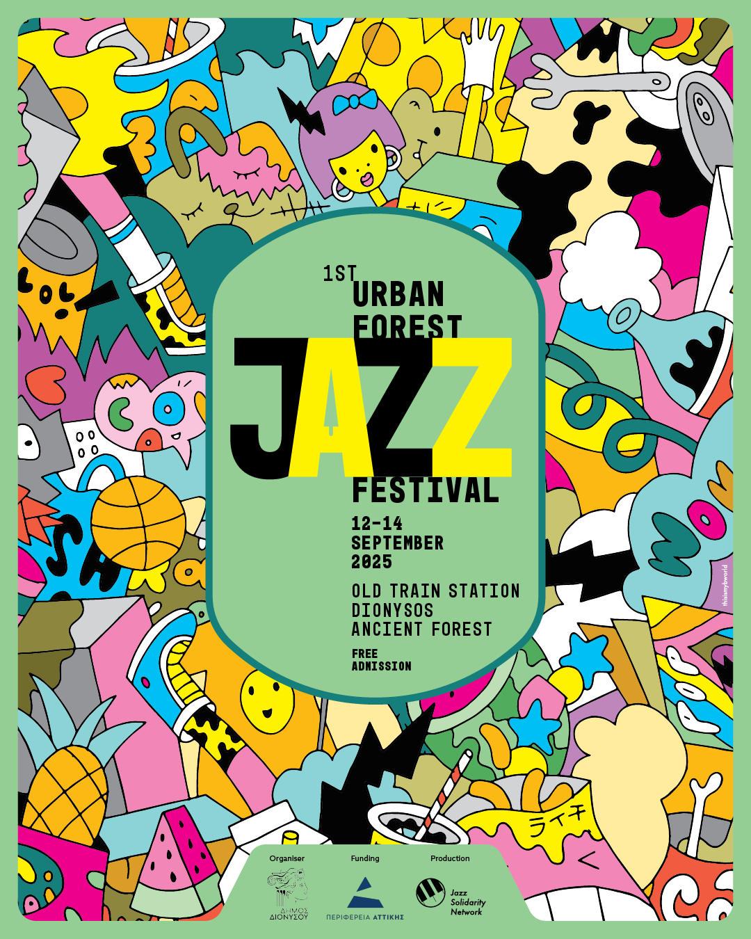 Μετά την τεράστια επιτυχία του «1st Aegina Jazz Festival», με πάνω από 1200 συμμετέχοντες στον ιστορικό χώρο των πρώην φυλακών της Αίγινας, και δύο συγκλονιστικές «Ροές Αυτοσχεδιασμού» στο Θέατρο Ροές στο Γκάζι, το Jazz Solidarity Network εγκαινιάζει το 1st Urban Forest Jazz Festival στο Αρχαίο Δάσος Διονύσου μπροστά στα ερείπια του παλιού σταθμού τρένου, 12-14 Σεπτεμβρίου, σε συνεργασία με την Περιφέρεια Αττικής και τον Δήμο Διονύσου.