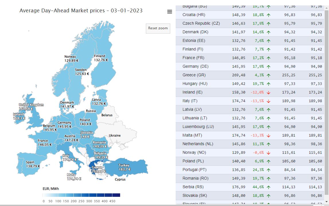 Την ίδια στιγμή η «ψαλίδα» ανοίγει με τις δύο χώρες που βρίσκονται στη δεύτερη θέση με την ακριβότερη μεγαβατώρα στην Ευρώπη. Στις δύο αυτές χώρες -Ιταλία και Μάλτα-, σήμερα, Τρίτη 3 Ιανουαρίου, η μεγαβατώρα ανέρχεται σε 174,74 ευρώ ήτοι, διαφορά σχεδόν 100 ευρώ με την Ελλάδα που υπολογίστηκε σε 269,48 ευρώ, σύμφωνα με τη Ρυθμιστική Αρχή Ενέργειας.