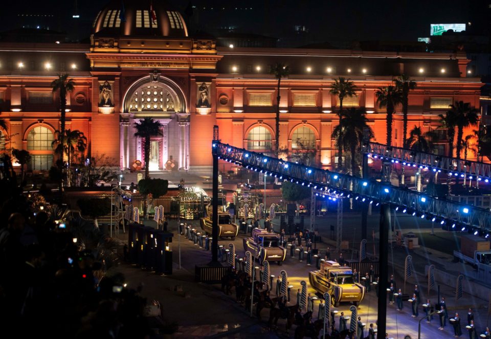 Ενώ ακούγονταν κανονιοβολισμοί, τα άρματα έφτασαν στο ολοκαίνουριο μουσείο μισή ώρα αργότερα και τα υποδέχτηκε ο πρόεδρος Άμπντελ Φάταχ αλ Σίσι.