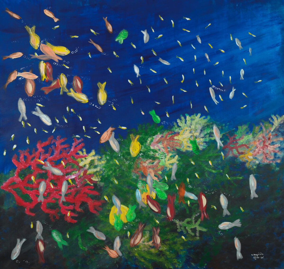 Μιλώντας για την νέα έκθεση «Under the Water» στο Jeju Park Stone Museum, σημείωσε ότι «ζωγράφισα βυθούς πρώτη φορά για έκθεση. Εμπνεύσθηκα τα έργα μου από την περιοχή του Τζέτζου, όπου φιλοξενείται. Πρόκειται για ένα νησί στα νότια της Κορέας με απόκρημνα βράχια και εντυπωσιακούς βυθούς, στους οποίους βουτάνε γυναίκες βετεράνοι κυρίως, από 60-90 χρονών, χωρίς μπουκάλες βέβαια, για να φέρουν στην επιφάνεια σφουγγάρια, κοράλλια, κοχύλια και ότι έχει να τους προσφέρει ο πλούτος της θάλασσας».