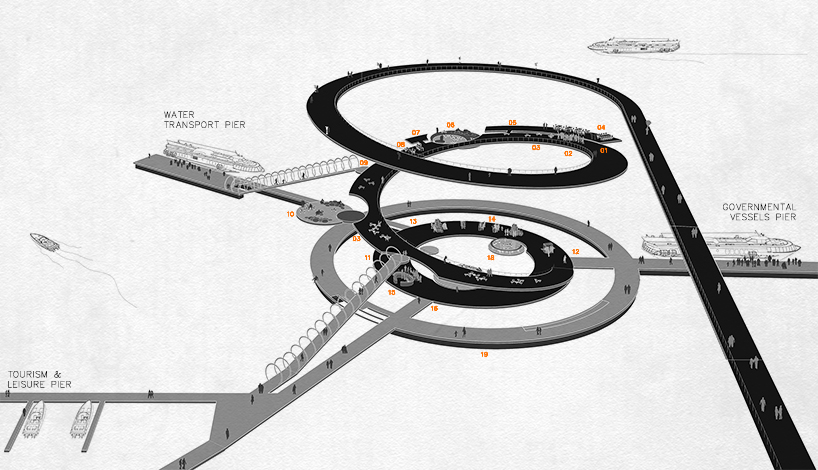Λαμβάνοντας υπόψη την κατάσταση πλημμυρών του ποταμού han, ο σχεδιασμός υιοθετεί μια προσέγγιση ευελιξίας. Η πλωτή δομή συνδέεται με τη γέφυρα πρόσβασης πεζών μέσω μιας μεταλλικής γέφυρας, όπως διαβάζουμε στο Design Boom, ενώ ταυτόχρονα ρυθμίζει την κλίση σε μια προσιτή κατάσταση για το κοινό κατά τη διάρκεια των κανονικών επιπέδων πλημμύρας.