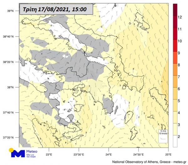 Όσον αφορά στην εξέλιξη των ανέμων στην περιοχή, σύμφωνα με τα τελευταία προγνωστικά δεδομένα του Εθνικού Αστεροσκοπείου Αθηνών / meteo.gr, θα πνέουν αρχικά από μεταβαλλόμενες διευθύνσεις έως 2 μποφόρ, από το μεσημέρι θα στραφούν σε νότιους έως 2 και τοπικά έως 3 μποφόρ και προς το βράδυ θα στραφούν σε βορειοδυτικούς έως 2 και τοπικά έως 3 μποφόρ.