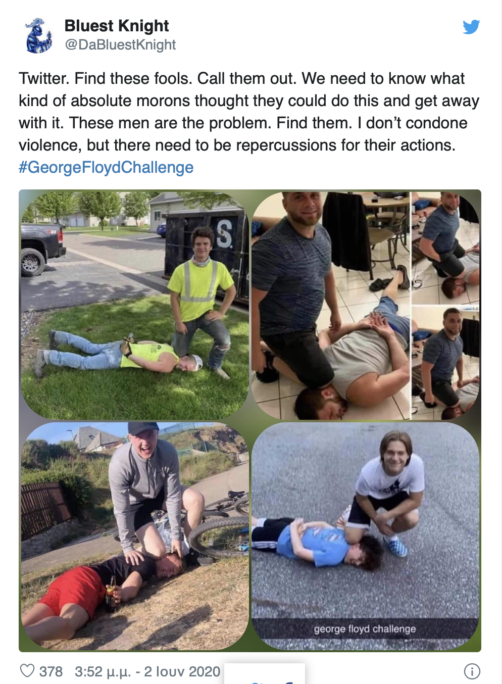 #GeorgeFloydChallenge: Κι όμως κάποιοι θεώρησαν έξυπνο να χλευάσουν την άγρια δολοφονία του 46 και μάλιστα ανέβασαν το κατόρθωμά τους στα social media