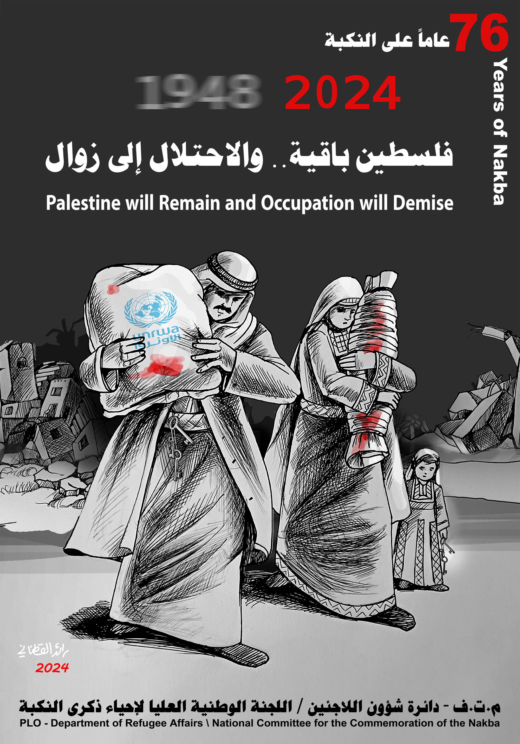 Καθώς τιμούμε το 76ο έτος από τη Νάκμπα, «την Καταστροφή της 15ης Μαΐου του 1948», το μήνυμά μας είναι ξεκάθαρο. «Θα παραμείνουμε βαθιά ριζωμένοι στη γη των προγόνων μας, στην πατρίδα μας την Παλαιστίνη. Η Παλαιστινιακή ιστορία και ο πολιτισμός δεν μπορούν να διαγραφούν και με τη σταθερή θέληση του λαού μας θα συνεχίσουμε να επιδιώκουμε και να διεκδικούμε τα δικαιώματά μας: το δικαίωμα της επιστροφής, το δικαίωμα στην αυτοδιάθεση, την ελευθερία, τη δικαιοσύνη και την ανεξαρτησία».