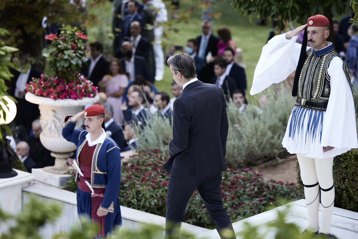 Ο πρωθυπουργός Κυριάκος Μητσοτάκης προσέρχεται στη δεξίωση για την 48η επέτειο αποκατάστασης της Δημοκρατίας στη χώρα μας, στο Προεδρικό Μέγαρο, Αθήνα, Κυριακή 24 Ιουλίου 2022. ΑΠΕ-ΜΠΕ/ΓΡΑΦΕΙΟ ΤΥΠΟΥ ΠΡΩΘΥΠΟΥΡΓΟΥ/ΔΗΜΗΤΡΗΣ ΠΑΠΑΜΗΤΣΟΣ