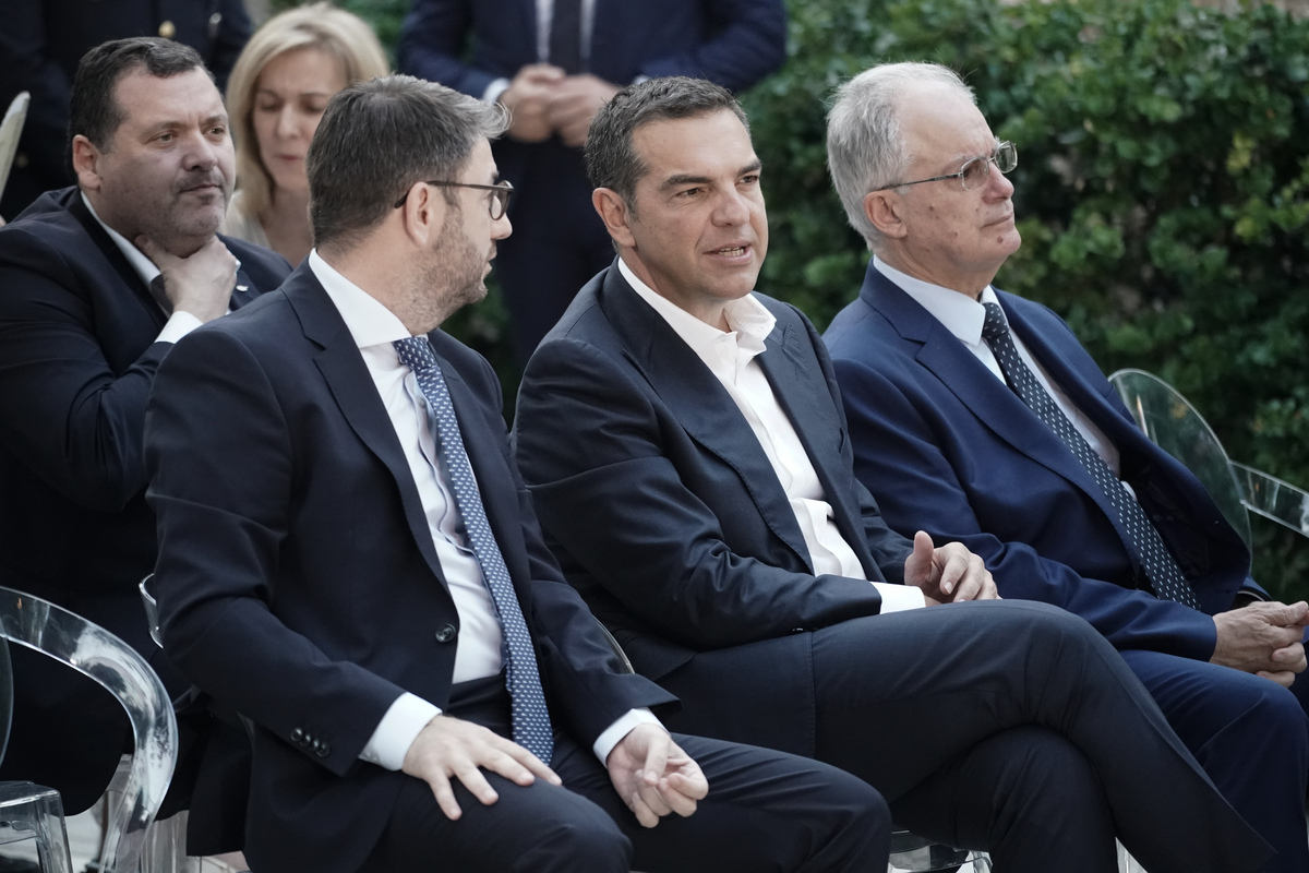 Ο πρόεδρος του ΣΥΡΙΖΑ Αλέξης Τσίπρας(Κ) μαζί με τους πολιτικούς αρχηγούς παρακολουθεί την ομιλία της Προέδρου της Δημοκρατίας Κατερίνα Σακελλαροπούλου, στη δεξίωση για την 48η επέτειο αποκατάστασης της Δημοκρατίας στη χώρα μας, στο Προεδρικό Μέγαρο, Αθήνα, Κυριακή 24 Ιουλίου 2022. ΑΠΕ-ΜΠΕ/ΓΡΑΦΕΙΟ ΤΥΠΟΥ ΣΥΡΙΖΑ – ΠΡΟΟΔΕΥΤΙΚΗ ΣΥΜΜΑΧΙΑ/ΜΕΝΕΛΑΟΣ ΜΥΡΙΛΛΑΣ
