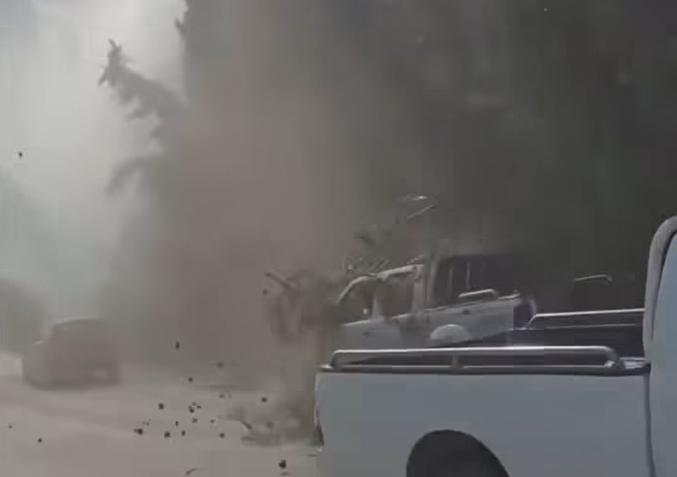 Στο βίντεο φαίνονται τα αυτοκίνητα που περνούν από τον δρόμο, κάτω από το ελικόπτερο. Λόγω της ρίψης του νερού, κλαδιά από δέντρα σπάνε και πέφτουν πάνω στα αυτοκίνητα.