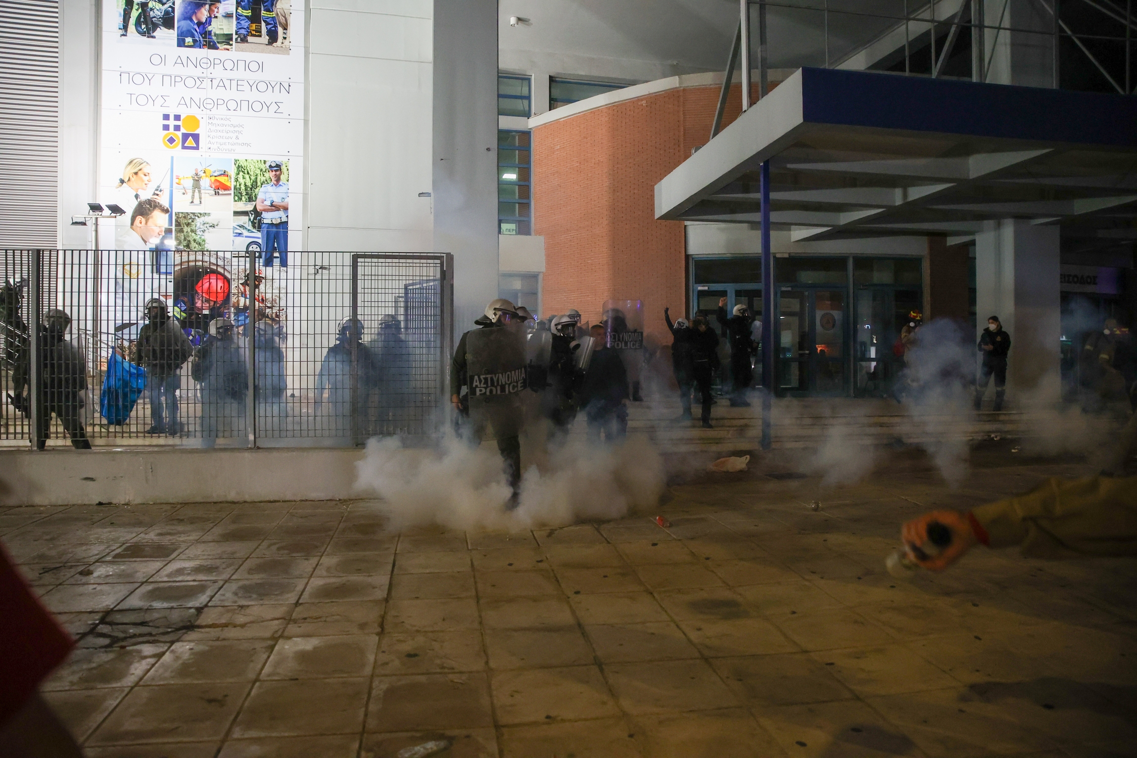 Τα άτομα δεν αποχώρησαν από το χώρο, ενώ κατά την παρουσία τους προκάλεσαν φθορές και επιτέθηκαν ρίπτοντας αντικείμενα κατά των αστυνομικών δυνάμεων, με αποτέλεσμα ένας αστυνομικός να τραυματιστεί και να μεταφερθεί σε νοσοκομείο για τις πρώτες βοήθειες.