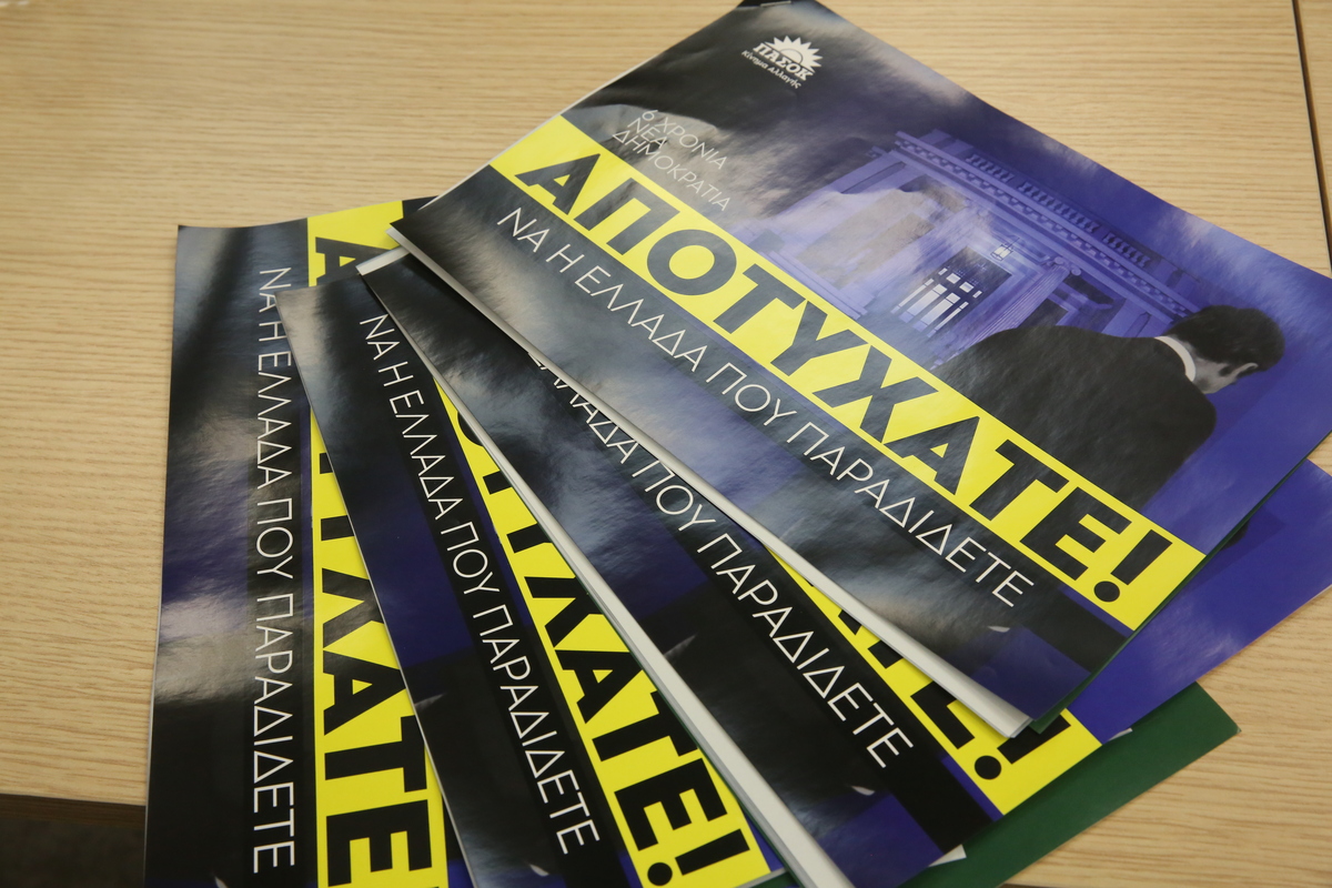 Φυλλάδιο με τίτλο ''ΑΠΟΤΥΧΑΤΕ!! ΝΑ Η ΕΛΛΑΔΑ ΠΟΥ ΠΑΡΑΔΙΔΕΤΕ'' κατά την διάρκεια συνέντευξης τύπου όπου παρουσιάζεται η "Μαύρη Βίβλος" της εξαετούς διακυβέρνησης της Νέας Δημοκρατίας στον τομέα του κόστους διαβίωσης και των κοινωνικών ανισοτήτων, στα γραφεία του κόμματος, Τρίτη 2 Σεπτεμβρίου 2025. Από τη Δευτέρα, 1η Σεπτεμβρίου 2025 οι αρμόδιοι βουλευτές και Τομεάρχες του ΠΑΣΟΚ, θα παρουσιάσουν τα πεπραγμένα της κυβέρνησης στους κρίσιμους τομείς της οικονομίας, της παραγωγικής ανασυγκρότησης, του κόστους διαβίωσης, της πολιτικής προστασίας και των θεσμών υπό τον γενικό τίτλο: «6 χρόνια Νέα Δημοκρατία| Αποτύχατε. Να η Ελλάδα που παραδίδετε». Στη συνέντευξη τύπου συμμετέχουν και οι βουλευτές του ΠΑΣΟΚ ΚΙΝΑΛ Μιλένα Αποστολάκη, Γιώργος Νικητιάδης, Παύλος Χρηστίδης, Φραγκίσκος Παρασύρης και Ιωάννης Τσίμαρης. ΑΠΕ-ΜΠΕ/ΑΠΕ-ΜΠΕ/ΑΛΕΞΑΝΔΡΟΣ ΒΛΑΧΟΣ