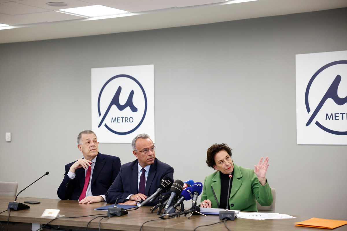 Το λογότυπο του μετρό Θεσσαλονίκης αποκαλύφθηκε σήμερα στη διάρκεια εκδήλωσης που έγινε στα γραφεία της Ελληνικό Μετρό ΑΕ, παρουσία του υπουργού Υποδομών και Μεταφορών, Χρήστου Σταϊκούρα και του αρμόδιου υφυπουργού, Νίκου Ταχιάου, του διευθύνοντος συμβούλου της Ελληνικό Μετρό, Νίκου Κουρέτα και του διευθύνοντος συμβούλου της THEMA, Κάρλο Μπιάνκο, που έχει αναλάβει τη λειτουργία και τη συντήρηση του έργου.