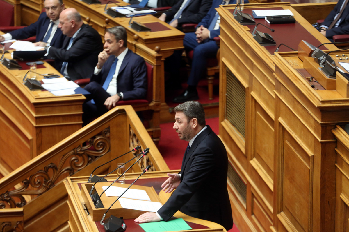Ο πρόεδρος του ΠΑΣΟΚ- ΚΙΝΑΛ Νίκος Ανδρουλάκης μιλάει στην Ολομέλεια της Βουλής στην «Ώρα του Πρωθυπουργού», Παρασκευή 24 Ιανουαρίου 2025. ΑΠΕ-ΜΠΕ/ΑΠΕ-ΜΠΕ/Αλέξανδρος Μπελτές