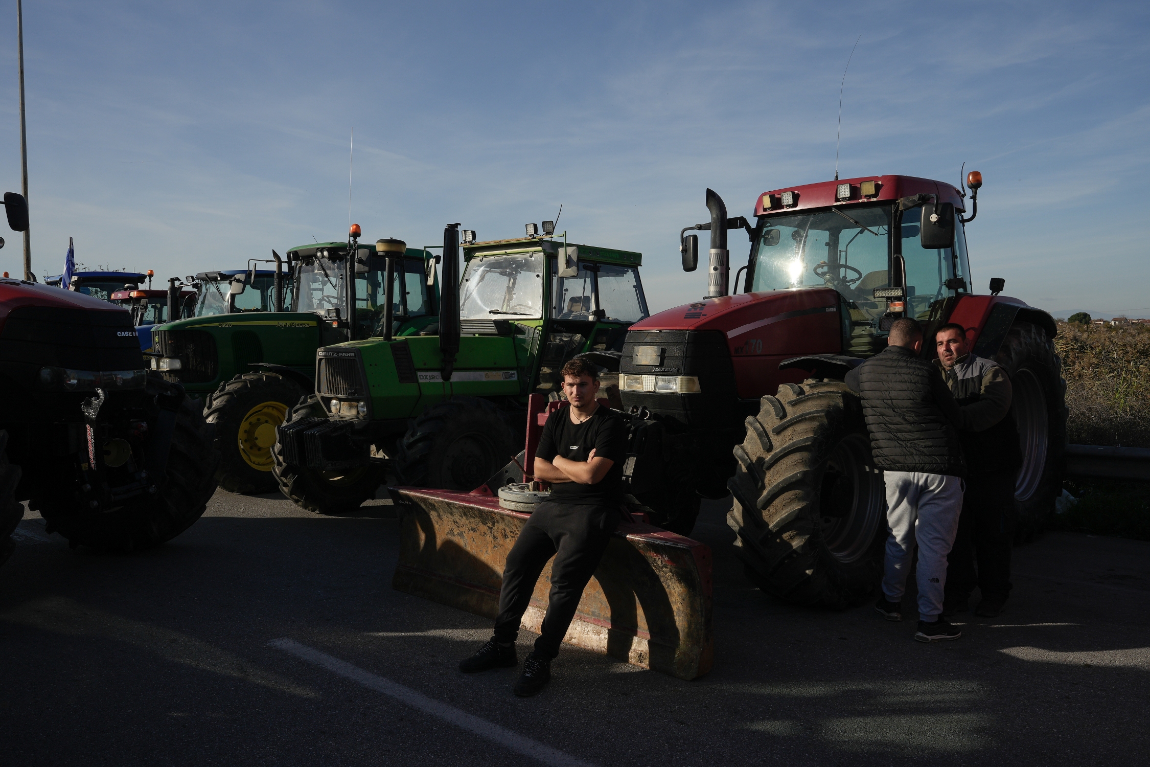 Protesting farmers block the Athens-Thessaloniki National Highway, in the direction of Athens, 25km southwest of Thessaloniki next to the Malgara toll station, Greece on December 1, 2025./ Διαμαρτυρόμενοι αγρότες κλείνουν την Εθνικής Οδό Αθηνών - Θεσσαλονίκης, στο ρεύμα προς Αθήνα δίπλα στα διόδια των Μαλγάρων, με τα τρακτέρ τους παραταγμένα επι της Εθνικής Οδού, Μάλγαρα, 1 Δεκεμβρίου, 2025