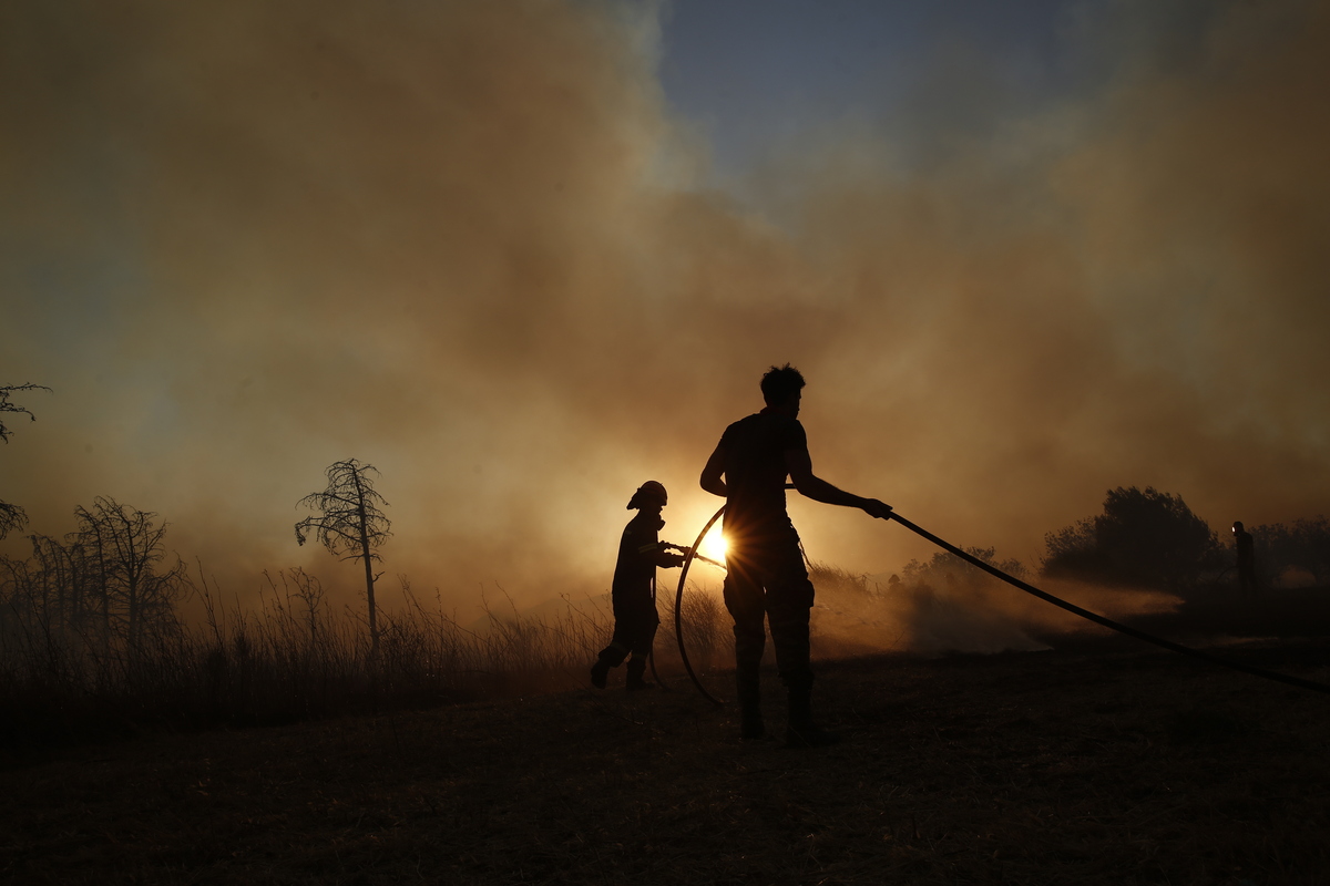 Πυροσβέστες και εθελοντές επιχειρούν στην κατάσβεση φωτιάς, που καίει στο Κρυονέρι Αττικής, Σάββατο 26 Ιουλίου 2025. Ενισχύθηκαν οι πυροσβεστικές δυνάμεις που επιχειρούν στην πυρκαγιά που ξέσπασε σε χαμηλή βλάστηση στην περιοχή Δροσοπηγή Αττικής και εξαπλώθηκε στο Κρυονέρι. Συγκεκριμένα έχουν κινητοποιηθεί 102 πυροσβέστες 3 ομάδες πεζοπόρων τμημάτων 36 οχήματα, εθελοντές, 2 αεροσκάφη και 3 ελικόπτερα. Συνδρομή παρέχουν υδροφόρες ΟΤΑ. Επιπλέον, εκδόθηκαν δύο μηνύματα του 112 προκειμένου οι κάτοικοι των περιοχών Δροσοπηγή και Κρυονερίου να απομακρυνθούν απ' αυτές. Ο εκπρόσωπος Τύπου του Πυροσβεστικού Σώματος, πύραρχος, Βασίλης Βαθρακογιάνης γνωστοποίησε ότι η Ελλάδα ζήτησε τη συνδρομή του Ευρωπαϊκού Μηχανισμού Πολιτικής Προστασίας προκειμένου να παρέχει στη χώρα 6 αεροσκάφη ενώ τόνισε ότι με εντολή αρχηγού Πυροσβεστικού Σώματος όλες οι υπηρεσίες της επικράτειας έχουν τεθεί σε γενική επιφυλακή ομοίως και όλες οι δυνάμεις πολιτικής προστασίας.,ΑΠΕ-ΜΠΕ/ΑΠΕ-ΜΠΕ/ΓΙΑΝΝΗΣ ΚΟΛΕΣΙΔΗΣ